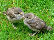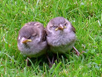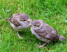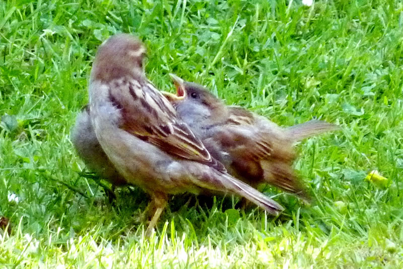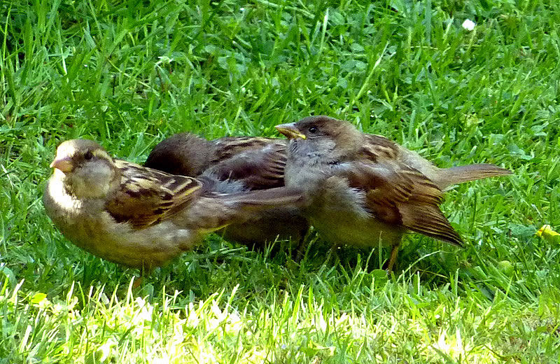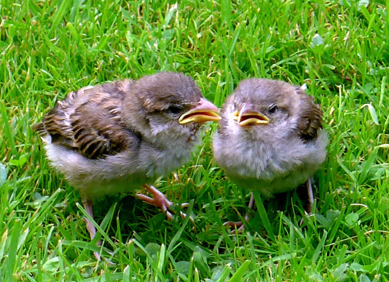 6.8.17 ....Tschilp! Tschilp! As ik dörch mien Goorn güng, höör ik en ludes Tschilp, Tschilp! Snaaksch weer, dat keem mehr so vun mien Fööt her! Dat weern wull lütte Lünken! Brukten se Hölp? Meern up den Rasen wöör ik en Fedderknuul wies. Dat beweeg sik. Vörsichtig sliker ik mi neeger ran. Dat weern wohrhaftig twee lütte Vagels, twee Lünkenkinner!