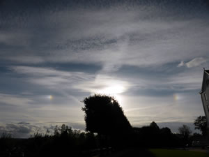 9.10.17 ....Harvstsünn maal dree An düssen droomhaftigen Harvstdag kemen an en Marmorheven (de jümmers sowat bargen deit) miteens düsse schönen Nevensünnen vörtüüg. Dat weer an't Slott Plön. Schöön as se weern, vertelln se doch vun Ies hooch baven in de Atmosphäär un dat dat Weder sik ännern warrt. Regen kümmt. Tominnst harrn wi düsse schöne Harvstsünn för korte Tied in dreefache Utfertigung! De Biller köönt Se per Klick