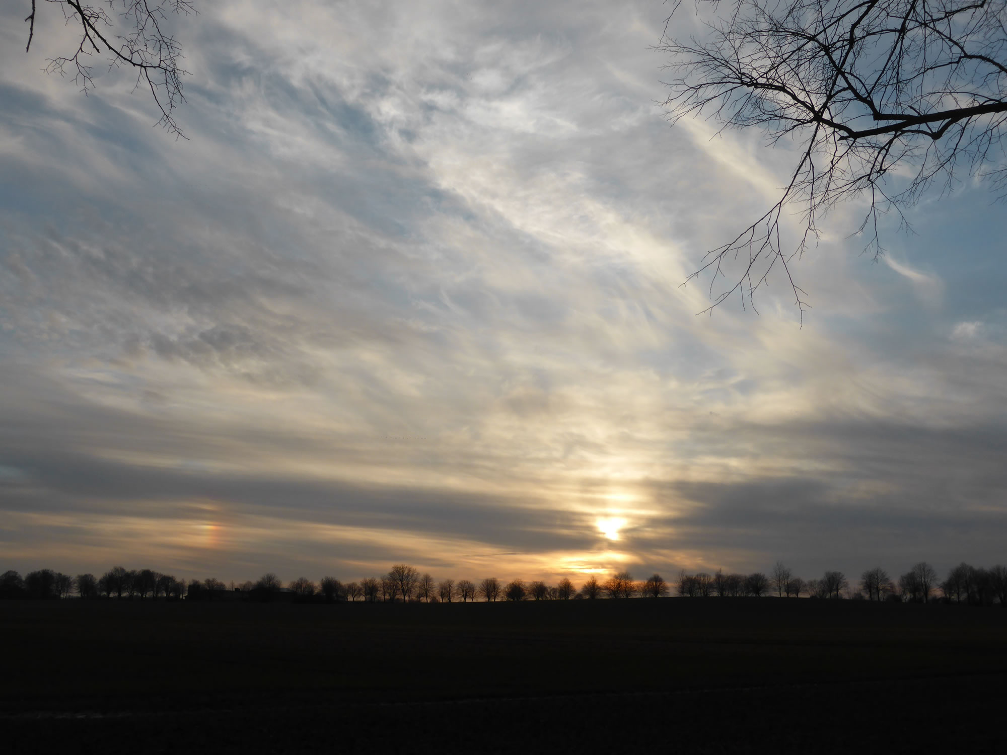 De hogen Ieswulken, in de de Halo eerst sichtbor warrt, hebbt sik kort dorna wedder vertrocken, un de Nameddag woor nochmal kloorblaag ehrdat nachts doch de Regen keem. De Biller köönt Se per Klick