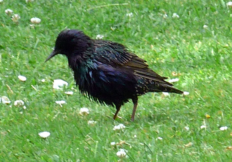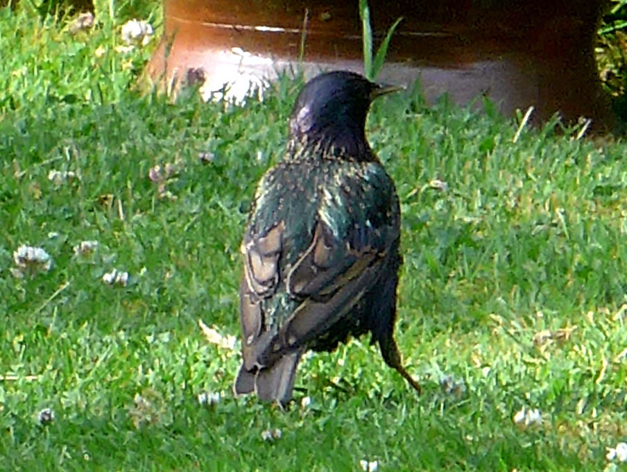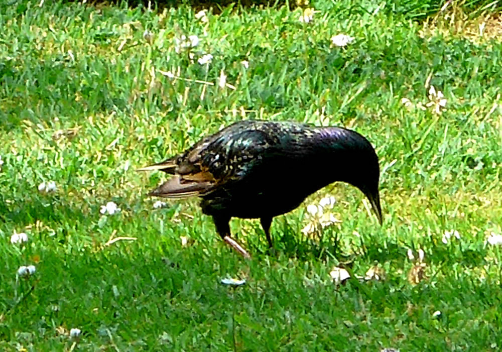 Wat weer dor för en Larm up de Terrass? De Vagels harrn den Ammer mit Vagelfoder ümsmeten! Dat weern ja Stare! De Star is 2018 de Nabu-"Vagel vun't Johr". Mit sien sprenkelt Fedderkleed is he eentlich prächtig, bloots vun Wieden is he unschienbor.