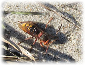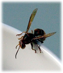 Auweia, dach ik, as ik in mien Warksteed keek. En snaaksches Gebilde hüng dor an de Deek, lütt, bruun un rund is dat etwa de Anfang vun en Wöpsennest?! Denn heff ik den ganzen Zirkus an'n Hals, entweder de Wöpsen fachgerecht ümsiedeln orr de Warksteed is för ganz schön lang tabu un ik harr noch veel vör.