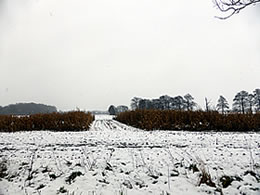 3.2.20 ....Dat mutt'n verklaarn Nicht an vele Steden kannst hüüt noch sowat sehn: En lichte Tuun, an Plastikpahlen locker in den Acker steken, nich mal dicht gegen wat is dat denn? Tja, leev Kinners, dat kennt ji nich mehr; dat is gegen Snee. Nee, nich dorför, dat dat nich sniet, sünnern wenn dat sniet, schall de Wind den Snee nich över de Straat puusten. Denn is de Straat nämlich gau dicht. Dat kunnst fröher veel beleven, wenn so'n Tuun fehlen dä. Dorüm geev dat düsse "Schneeverwehungszäune" överall, 'neem de Wind en frie Flach harr un gefährlich över de Straat puusten kunn. Dat ik hüüt noch een funnen heff, is meist en Wunner! Dat Bild köönt Se per Klick
