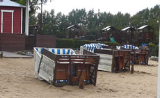 För den 4. Oktober harrn sik mien Enkelkinner anseggt. Se wullen mi dat jüngste Urenkelkind wiesen. Ok de Wedermann harr wat to mellen. De eerst Harvststurm sull mit Orkanböön över't Land trecken. Wi sullen, wenn dat geiht, to Huus blieven. De Bööm harrn doch noch so veel Loof un kunnen uns verletzen, ok in uns Auto. Nu keem de Besöök, ik möök op un keek rut de Storm wöör doch woll nich so leeg warrn?! As wenn mi de Storm anter, hau he mit luden Knall de Huusdöör to. Dorna trommel he mit den Regen gegen de Finsterschieven. De lütte Enkeldochter krööp ünner de Jack vun ehrn Vadder. "Nu kaamt man gau in't Huus!", reep ik. "Sünst hebbt juuch keen dröög Tüüch mehr an Lief!" Vun de Stuuv keem ehr warme Luft entgegen, in't Huus weer dat överall schöön warm. Bald harrn se dat störmsche un natte Begröten vun den Harvststurm vergeten. Annern Moorn hebbt wi an'n Fröhstücksdisch beslaten, dat wi enen Utfloog an't Water maken wulln. Dat wull aver noch gor nich so recht hell warrn. Aver de Oostsee-Steilküst bi Brodten trock uns ümmer wedder an. Gau weern wi in de waterdichten Plünn un föhr'n dat eerste Enn mit Auto. Wat hebbt wi uns verfehrt, as wi üm de Eck vun dat Strandlokal kemen! De Oostsee weer upwöhlt. De eersten Meter vun den Lehm weern gries farvt. De Strandkörf, de noch vör dat Lokal stahnbleven weern, legen all up den Rüüch. Vun de Steilküst weer wedder en grotes Stück Land in't Water fullen. De lütten Bööm weern mit dat Wöttelwark en poor Etagen deper rutscht. Överall leeg verstreut Astwark. Bunte Bläder bedecken den Waterstrom vun den Regen. De Storm Xavier harr ganze Arbeit maakt! Nu wies sik an Horizont en hellen Striepen. De Sünn harr sik dörch de Wulken arbeit. Wi kunnen sogoor dat Över vun de anner Siet sehn. Wat goot, dat wi uns up den Weg maakt harrn! För uns weer dat ok en richtiges Belevnis. De Biller köönt Se per Klick