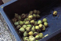Also allens mischen, den Hefewürfel tweibröseln in't lauwarme Water, rühren (dat Suerstoff rinkümmt) un 2 Stünnen gären laten denn is dor richtig Schuum bavenop! Dat Ganze denn in de Geetkann, dat langt för 1m³ Kompost. Nu hett mien Naver de Hecken sneden un ik heff em den Snitt afnahmen. Dat kümmt op mien Worms-Kompost de mööt ok wat kriegen, un ik denk, wenn dor baven so'n dicke Schicht Bläder un Twiegen is, dat hett minner Gefohr dör Frost! Un ganz baven op den Heckensnitt kaamt twee lerrig schütte Plantenschalen, de ole Eer mit Plantenreste binn. Un süh!, de Worms kaamt dör düsse dicke Schicht Heckensnitt na baven krapen, dat se an de leckeren Saken kaamt! Worms sünd 24 Stünnen in eensento in Bewegen. Echte Workaholics, dat. De Biller köönt Se per