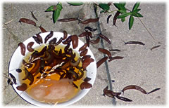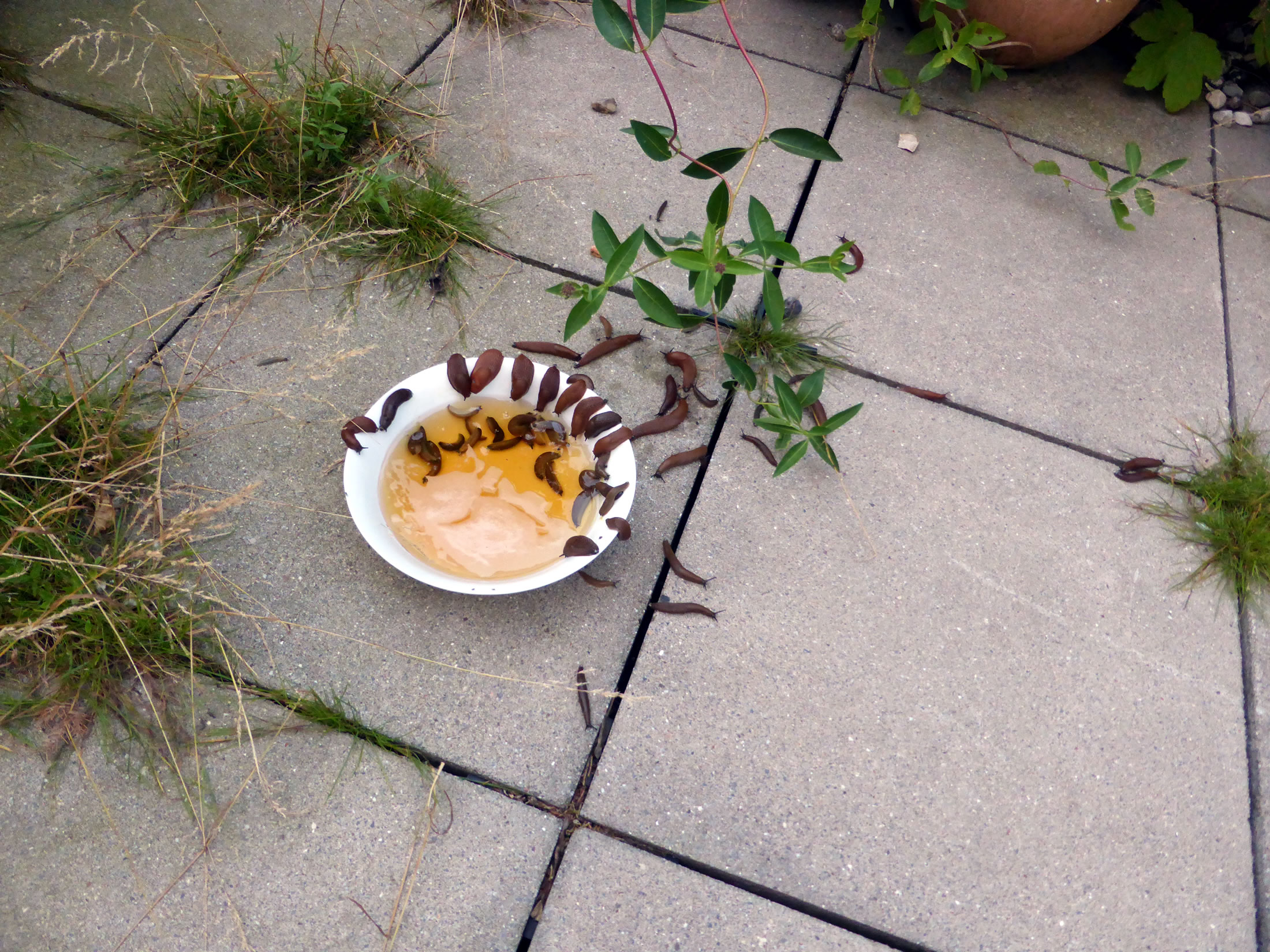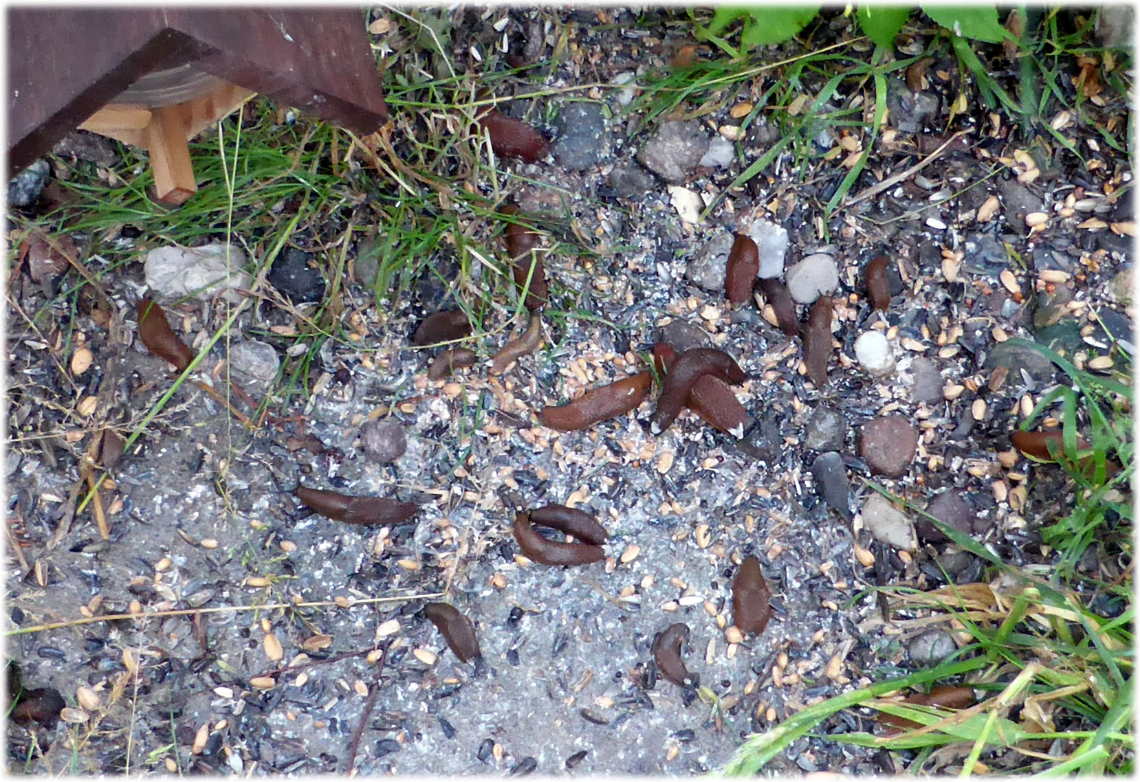 Tomehrst sünd dat Haferflocken, de vun Regen matschig worrn sünd. Gifft nix Schöners för de Snicken! Un de Vagels, mutt ik ja seggen, versaagt totaal bi't Snickenvertilgen. Nich mal de groten Vagels, Elstern usw., freet de Snicken! Angeevlich doot dat Flaschenenten, avers mutt ik mi etwa welk anschaffen?!