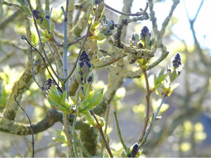 .... En beten to optimistisch weer ik bi den Fleder, he is nich mehr in'n Märzmaand opgahn, aver nu lett he sien blaue Blödenbläder sehn. De Struuk is noch jung un mutt noch wassen. Villicht deit he düt Johr en origen Schuss. De lütte Blaumeesch sitt in'n Avendsünnenschien un kiekt sik de Saak an. Ehr Nest is torecht, de ganze Tied fleegt de lütten Buttscher mit Nistmaterial in'n Snavel rüm, sogor de Kreihn un Elstern. De Biller köönt Se per Klick