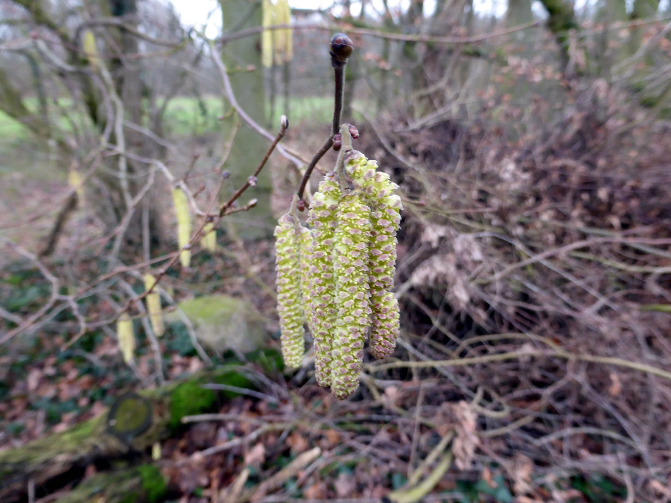 Na knapp een Johr weern wi wedder an den Diek. De Bööm weern noch kahl, aver an Wegrand blöön de eersten Bloom, Winterlinge un Sneekieker. Up den Diek tummeln sik de eersten Watervagels. Enen Boomstamm mit luder Messingschiller full uns up. De Schiller weern vörher an de Bööm vun sien anplantet Aboretum. Nu harr Harald de hier al sammelt; de Bööm dorto staht över dat Gelänn verstreut.