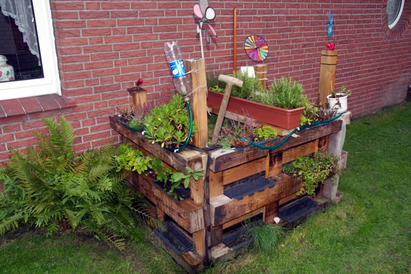 Bi mien Fru un mi hett dat ok de Kompost komfortabel. De Kompostbox an de Huussiet heff ik sülven buut un nu warrt se mit Blomen fein utstaffeert.