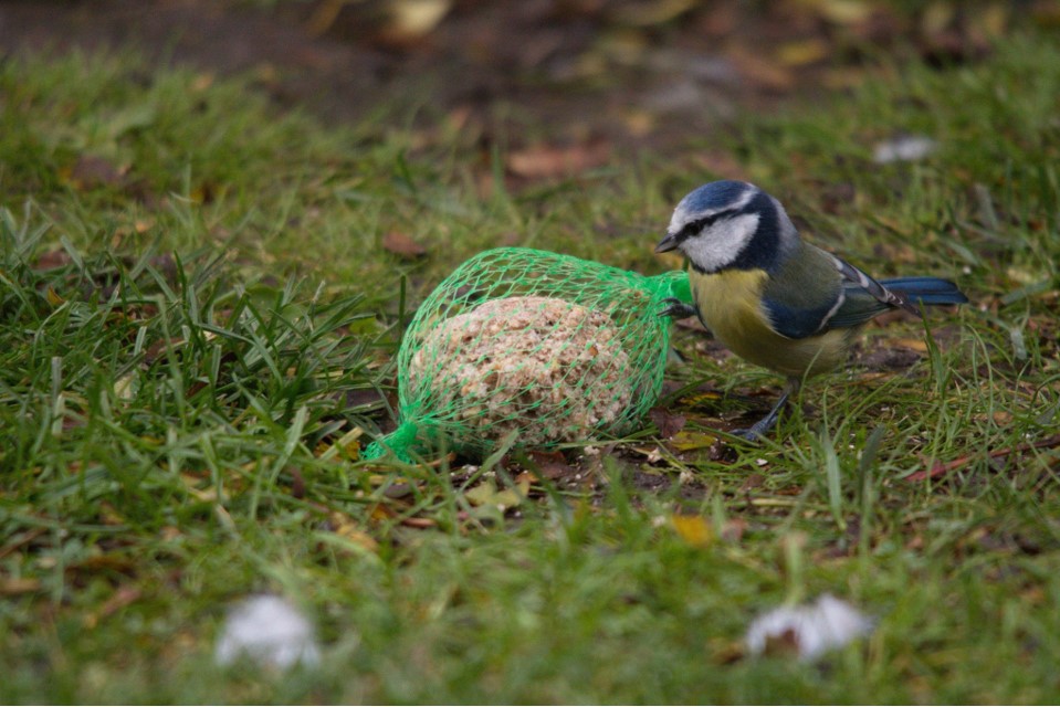 Snicken. Fief Stück heff ik tohoop an de Vagelfoderspender