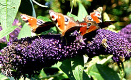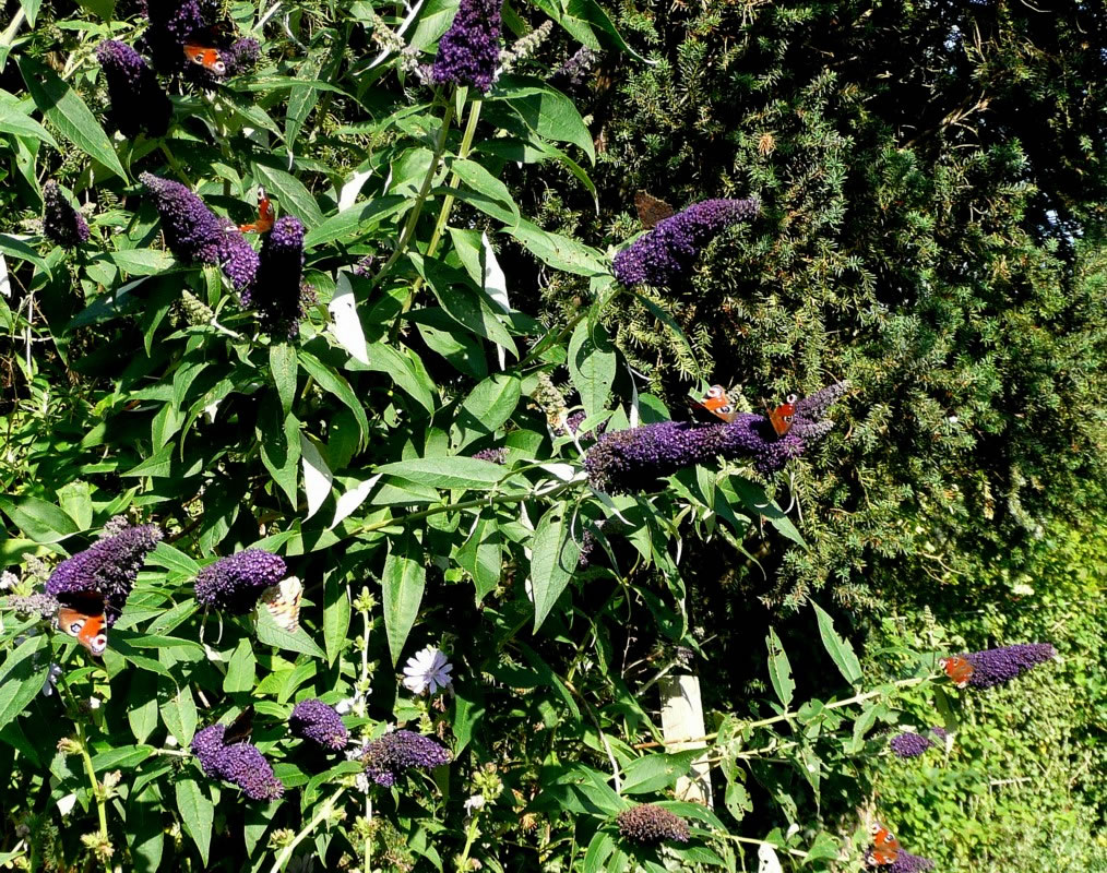 Bi mien Naver steiht en düsterlila Buddleia in de Heck. Dat is en Zierbusch, ene Oort Sommerfleder. De Buddleia is 1890 ut China bi uns inföhrt woorn. Mit de verscheden Farven un de slanke un lichte Oort is he in Sommer en Smuckstück in uns Goorns. De Telgen mit de Blöden hangt in en'n Bagen na ünnen. He blöht vun Juli bit September. Wi kennt em ok ünner den Naam "Schmetterlingsboom": he lockt al de verscheden Bottervagels an. Un düsse Sommer is bi uns en Bottervageljohr. So veel Bottervagels heff ik in unsen Goorn noch nie andrapen. Dat is richtig schöön. Villicht hett de Bottervagelboom uns dorbi holpen. He hett den Naam to Recht kregen. Güstern heff ik tominnst dörtig bit veertig Bottervagels tellt, de in de Moornsünn üm em rümgaukeln. Dor weer mitünner kuum noch en frien Placken up de Blöden för de verscheden Bottervagels to finnen. Distelfalter un Pfauenauge rangeln üm en goden Placken an de Sünn. Ok de Immen weern mit vun de Partie. De Weißlinge kregen meisttiets keen Been an Deck un lannen blots up en Blatt vun den Sommerfleder. In'n Harvst plant ik mi ok so enen Boddervagelboom in de Heck. Dat heff ik beslaten. Denn mutt ik nich ümmer na den Naver röver. De Biller köönt
