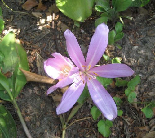 uns in 't Fröhjohr nich. Man nu, hüüt morgen in unsen Goorn toeerst denk ik noch an Krokus man denn fallt mi in, dor blöht ja uns Herbstzeitlose. Zort lila. Un in'n Gegendeel to den Krokus, de dree Blödenstoff-Fadens hett, seh ik bi de Herbstzeitlose söß.