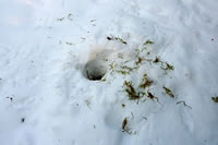Farven. Man wat dor ünnen liggt, dat is ok Foder för anner Deerten. Wir wullen dat toeerst gor nich glöven. Dat kunn doch nich angahn, hier bi uns vör de Döör. Wat is dat? Sullen dat sullen dat würklich Müüs sien? Se sünd meist en beten groot. Du, dat sünd Rotten! Nee, igitt, Rotten! Dor kiek, glieks bi den Pahl vun dat Vagelhuus, dor is en Lock. Dor,