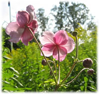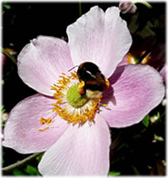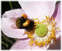 De eersten Sünnenstrahlen an Moorn lüchen up mien rosa Anemone. Se blööt ümmer eerst in den laten Juli un den Augustmaand, de Anemone Japonikum. De smucken Blöden lockt veel Insekten an. Ganz besünners kemen de verscheden Hummeln to Besöök. Se bedenen sik iefrig mit den Blödenstoff, mit de Pollen. Dörch kräftig Slääg mit ehr Flünken in de Blööt lööst se de Pollen. Dorbi verdeelt sik de Stoff över de Hummel, un de süht wi inpudert ut. Denn strepelt de Hummel mit ehr Been de Pollen to Klumpen tohoop. De Klumpen, Pollenhöschen, kleevt se sik an de Achterbeen. Dorbi is en hohes fienes Summen to höörn, meist as wenn ehr wat passeert weer. Dat hett mi anlockt un ik heff en Hummel bi't Pollensammeln tokeken. Se harr ehr Büxen al randvull, söch aver ümmer noch mehr. Möök dorbi Koppstand, üm beter an de Pollen to kamen. Un ümmer noch kleev se welk an ehr Büxen. Wi se de wull na Huus bringen wull? Endlich harr se noog. Bi den Trüchfloog trock de Last vun de vullen Büxen de Hummel meist n'beten na ünnen. Aver se hett dat wull doch schafft. Seker weer dat en Arbeiderin ut en Hummelvolk. De Biller köönt