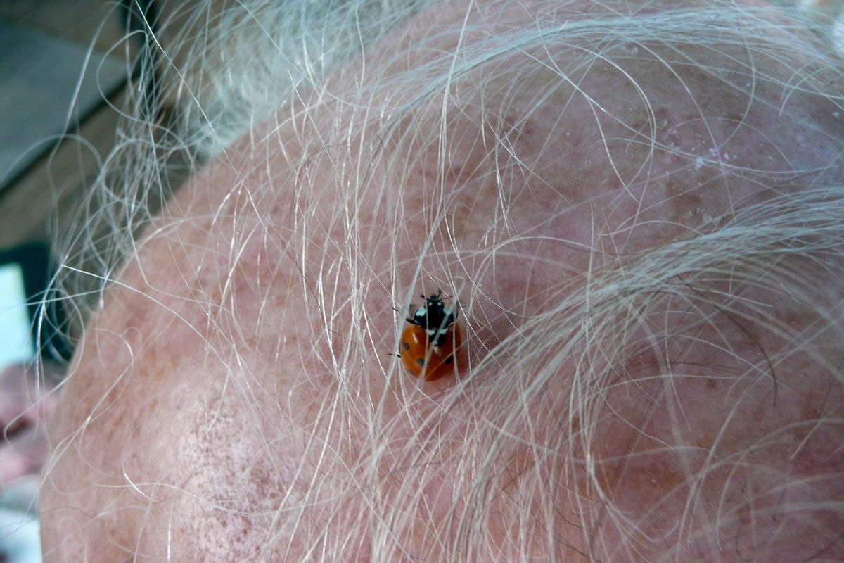 Dor, an de Wand mank den Jasmin weer en gröön Placken! Weer dat de Hasselpogg? Dat kunn doch nich angahn. Ik truu mien Ogen nich, ik dach ik drööm! Upreegt güng ik in de Stuuv un putz mi de Brill. Aver kuum to glöven, dat weer wohrhaftig de Hasselpogg. He seet dor an den glieken Placken in de Sünn as verleden Johr! Up he güsternavend mien Stimm wedderkennt hett? Ik heff up sien "Äpp, äpp, äpp!" antert. Seker will he wedder mit mi snacken! De Biller köönt
