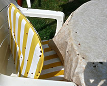 Schittreiher (Griesreiher) stöäkeln meest dör leeged Woater üm dor Fischker to fangen. Ov un to doon see dat ov versöken dat tominnst ok in Tuunpooln. Liekers luurt dor foaker een Gefoahr, de see so nich kennen köänt. Veele Tuunwaterpoolen sünd nämich mit Netten övertrukken, ut Sörch, dat in de Kuul Kinner ovdrinken köänt oaber ok as Verwoahr tägen de griese Fischdeef. In so een Säkerheitsnett över een Tuunwoaterpool in Saan har sükk körtens een Schittreiher verhoakt. Dat Deert wee an Ennen van sien Köänen un har keen spierke Moot mehr sükk to röögen, as ikk updüük un hüm to Hülp iil.