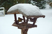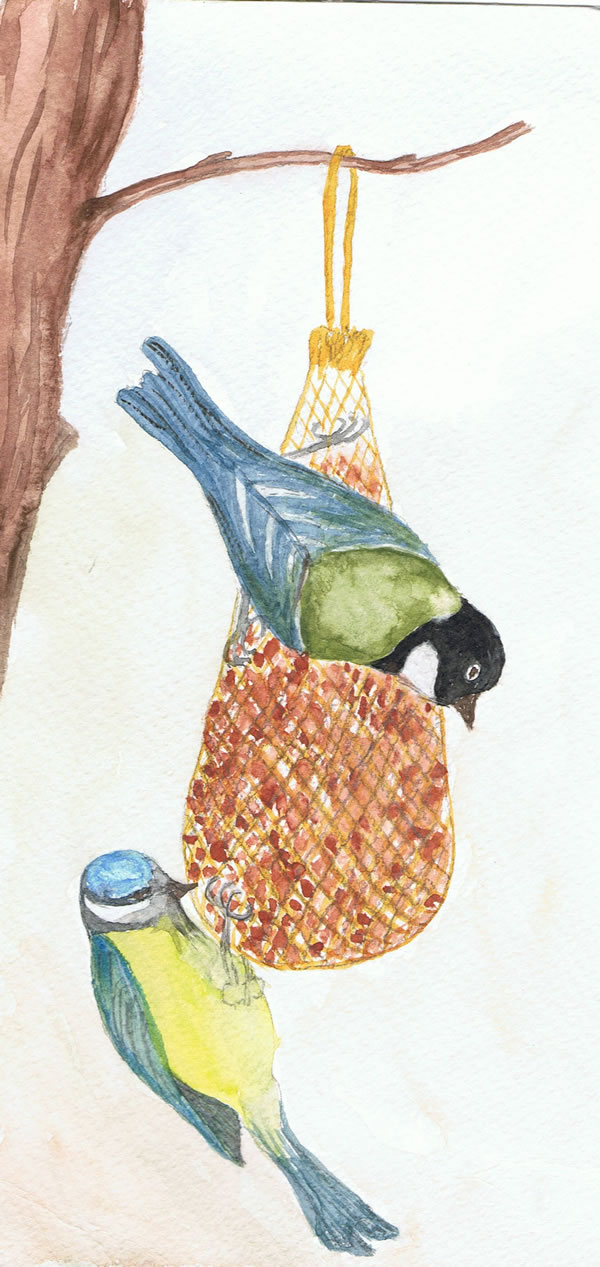 Vör en poor Johr hett Herbert uns en groot Vagelhuus buut, ene Vagelvilla. De is mit uns ümtrocken un steiht nu dicht vör dat Stubenfinster, man eben twee Meter weg, glieks neben so enen lütten Efeubusch. Toeerst harr dat Huus nich so recht Hollfast, dat heet, dat is en poormal ümfullen. Man nu, bi den Frost, dor steiht dat piel in'n End. Un en Leben is dor nu! Wi köönt dat allens so fein bekieken, wi köönt dor meist henlangen. Kiek, dor is uns lütt Fründ wedder, de Rootkehl. Wat hett he för dünne Been! Wo lüücht sien Bost! He haalt sik en poor Körner vun dat Foder un gau is he wedder weg. Nich wiet, eben bet up de Plank. He is keen Angeber, wiß nich, man mit sien rode Farv kümmt so licht keen anner mit. Doch, dor! Dor sitt nu en in dat Huus, de kann dat noch beter. Dat