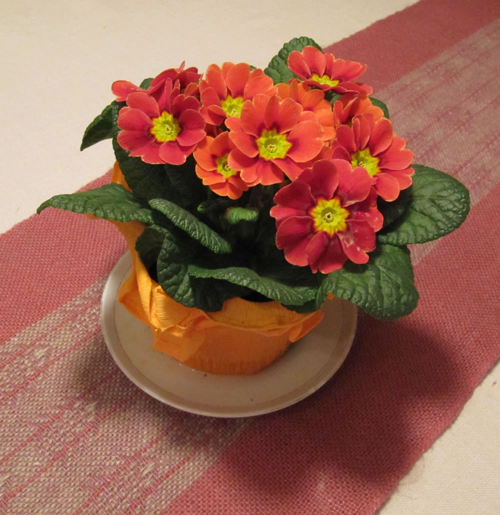 Mien leef Mann keem mit enen Primelpott an. He weer bi unsen Gorner