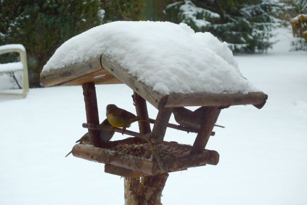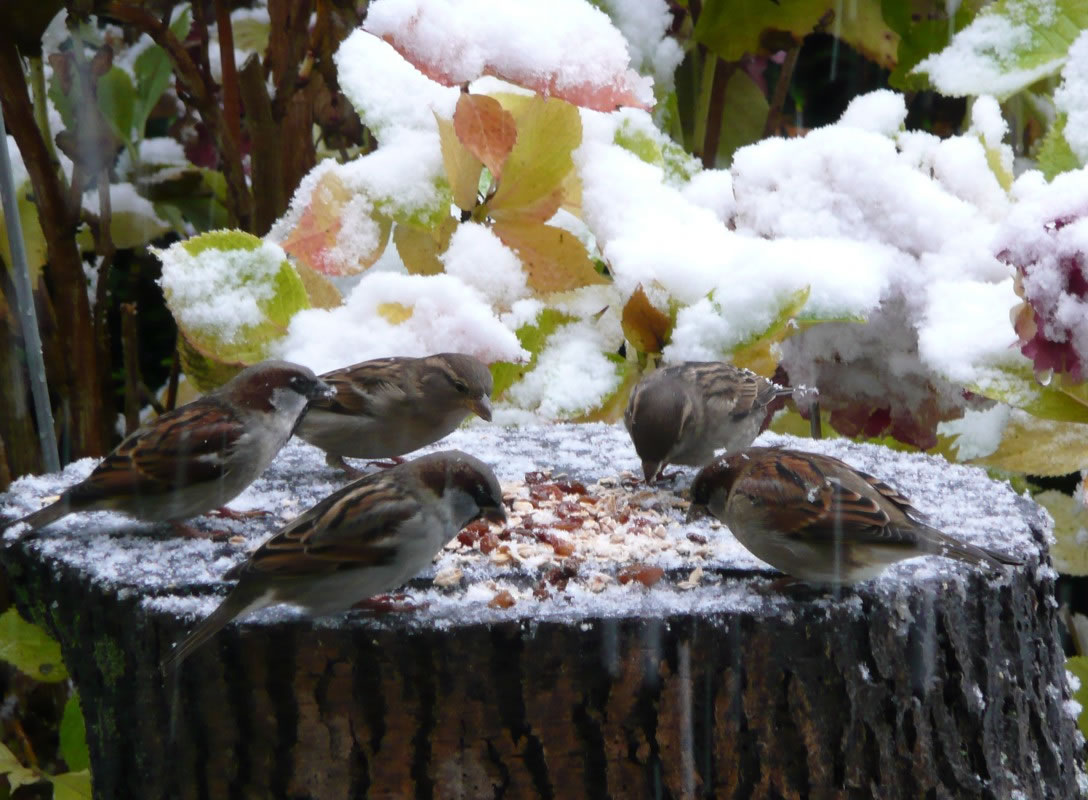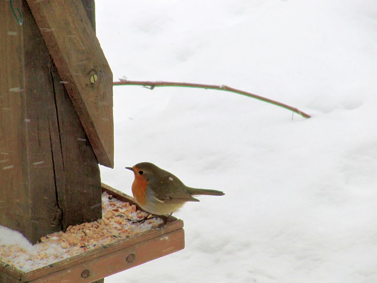 Tja, so is dat bi uns buten vör dat Finster. Rootkehl un Dompfaff un Häger kaamt jümmers noch un de Rotten sünd ok noch dor. De Biller köönt Se per Klick