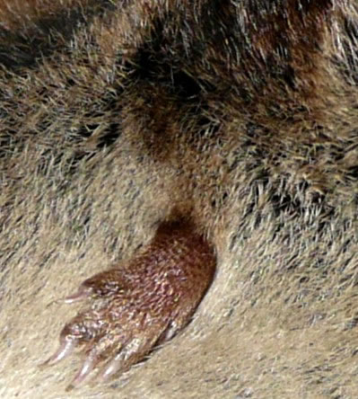 un Greta weer em wies woorn. Se harr em dor up Ik heff em denn up en Schüffel mit up de Terrass nahmen. Heff em up den Lünkendisch afleggt un mi genau ankeken. Wat harr he för en smuck week Fell! As Kind harr ik mal enen Mantelkragen ut Mullworpsfell. De weer so week. Dor heff ik ümmer mien Nees rinsteken un an dat weke Fell reven.