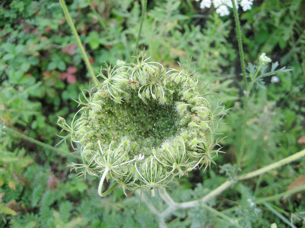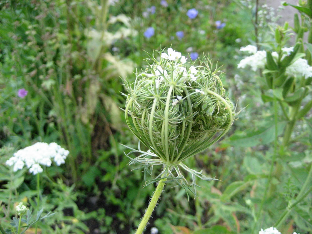. .Wilde Möhre Anner Namen: Möhre, Maurach, Mauroch, Merchen, Merl, Mörlen, Mohrrüben, Mohrwurzeln, Mohrenkümm, Mohrenköpfe, Morich, Murke, Murr, Eselsmöhren, Maidele, Schatthutbengel, Vogelnest Wenn een in'n Sommer buten ünnerwegens is, denn süht een heel vele Dolden-Planten. All seht se tominnst för miene Ogen liek ut. Ik kann de eenfach nich ut'neen hollen. Is dat nu Fenchel, Anis, Kümmel, Dill orrer noch wat anners, nie bün ik mi seker. Blots een Plant is dorbi, de kann ik jümmers glieks kennen, un dat is de Wilde Möhre. De Wilde Möhre hett in de Mitt vun ehre witte Dolde en düüster Blööd. As so 'n swarten Punkt süht dat ut. Wenn de Plant utblöht hett, denn treckt sik de Dolde na de Mitt hen tosamen. As so 'n Vagelnest süht dat denn ut. Ik weer graad ünnerwegens un dor stünn de Wilde Möhre