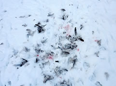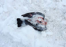Veer Stück. Veer dode Busserten vun Hamborg bet hier, also op 70 km Autobahn un Landstraat. Plattfohrt op de Fohrbahn orr stief un dood an'n Rand, de schöne witte Bost bi een noch ganz unversehrt... "Road kill" seggt de Ingelschen dorto, "Stratendode". Un al witscht ok vör min Auto en Bussert in'n Deepfloog vörbi. To'n Glück fohr ik langsam, wi kaamt us nich in'e Mööt. Woso, fraag ik mi, opmaal so vele? Min Verdacht: In düssen strengen Frost findt de Roovvagels meist nix mehr to'n Freten. So patrouilliert se de Straten un Autobahnen af na Aas, na doodfohrte Deerten. Wenn se een funnen hebbt un dat verspiesen wüllt, warrt se sülven Opper vun'n Verkehr. Wat schallt se anners maken? Dat is de reine Hunger. Kannst ehr meist een to'n annern seggen höörn: "Kaam mit na de Autobahn! Etwas Besseres als den Tod finden wir da bestimmt!" Man da hett'n Uul seten... Ünner de Deerten is so'n Winter meist as Haiti nu för de Minschen: Noot. Natuur is nich romantisch. Un op ganz natüürliche Wies starvt mennig. Wenn nich Hülp "vun buten" kümmt, vun Minschen. Bi Insekten findt wi dat good, wenn se starvt, se schallt "utfreren"; Singvagels fodert wi mit de Hand, Roovvagels mit dat Auto. Verkehrsadern, Levensadern, Doodsadern. Orr weet Se en annern Grund för de velen doden Busserten? Marlou Lessing