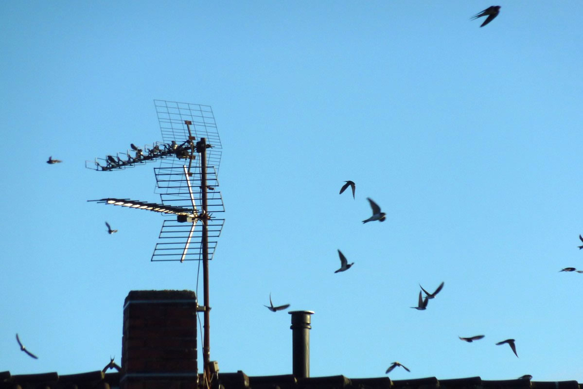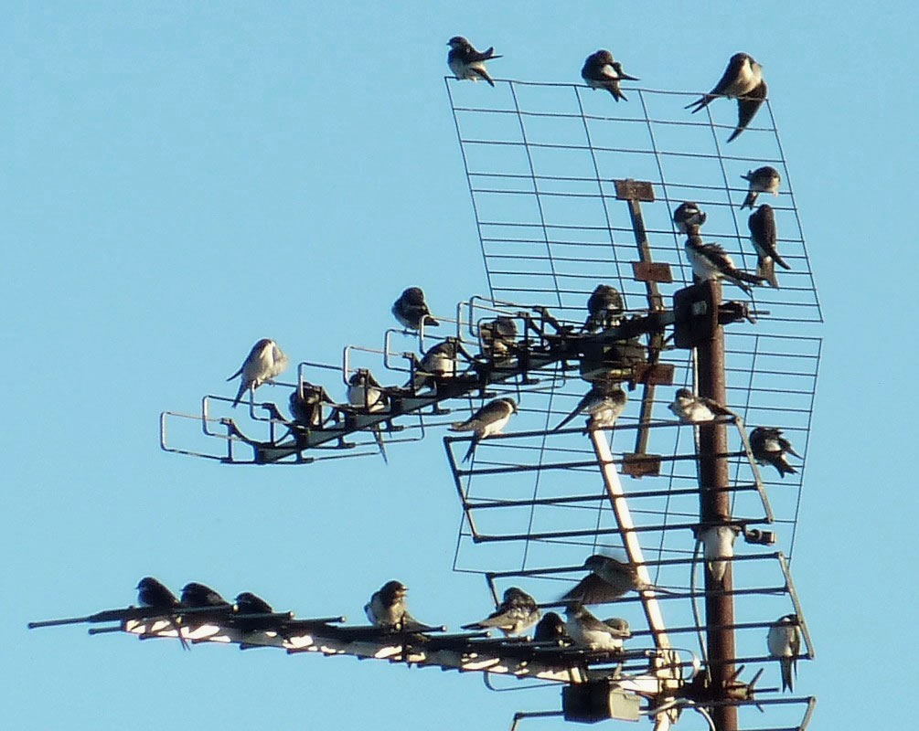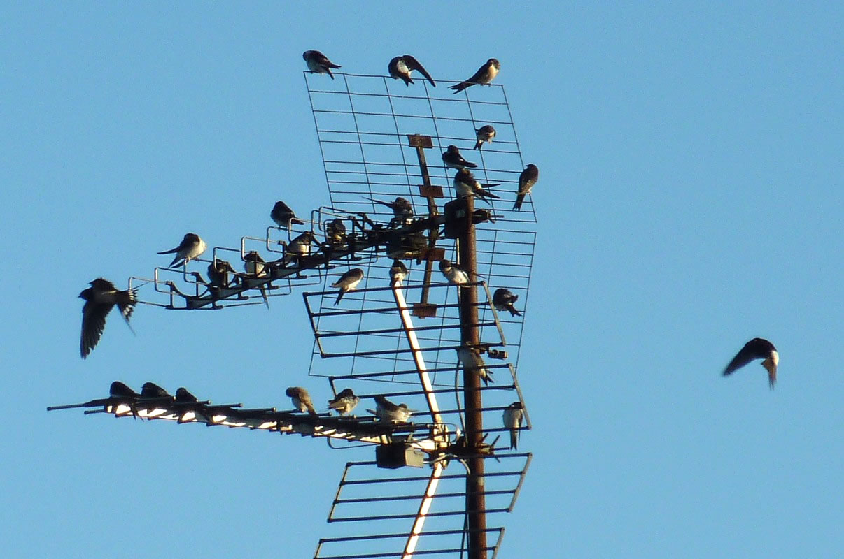 An en Septembermoorn harrn sik up de Antenn vun mien Naver gegenöver en ganzen Barg Swulken daallaten. Se seten in de warme Moornsünn un putzen ehr Fedderkleed. Mal flögen ok welk up un kreisen üm de Antenn. Sehg meist ut, as wull'n se noch 'n beten dat Flegen öven, bevör se up de grote Reis na'n Süden güngen.