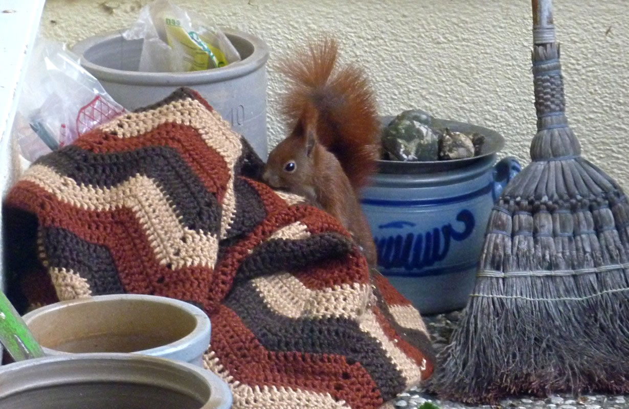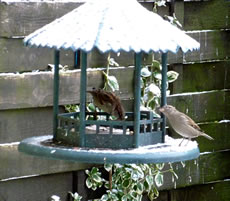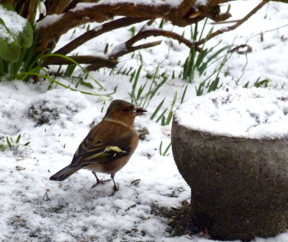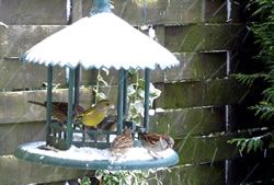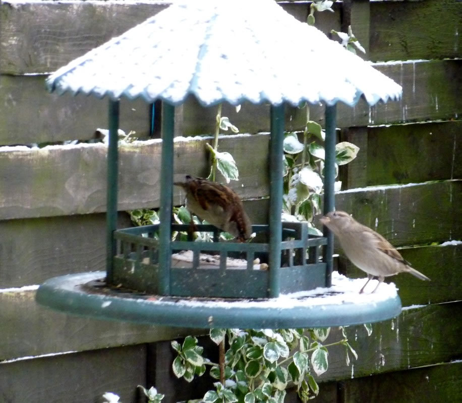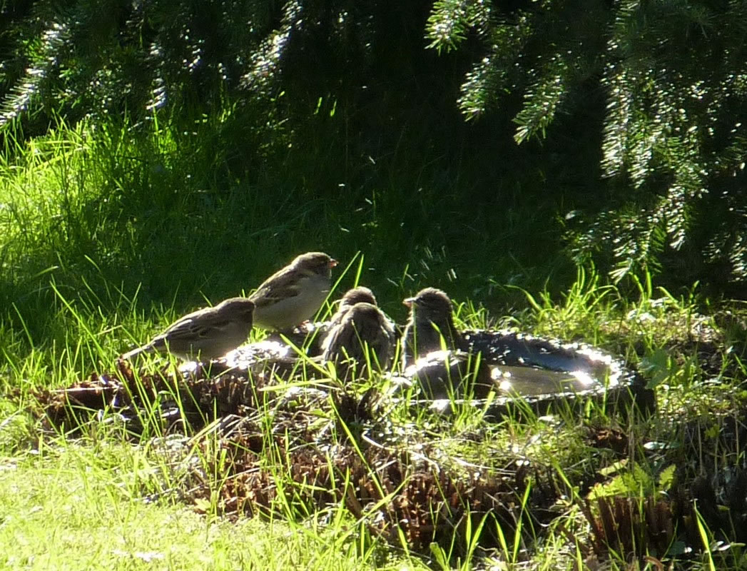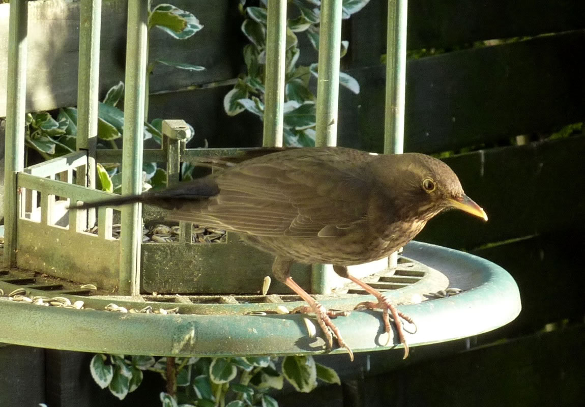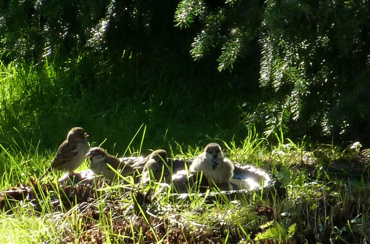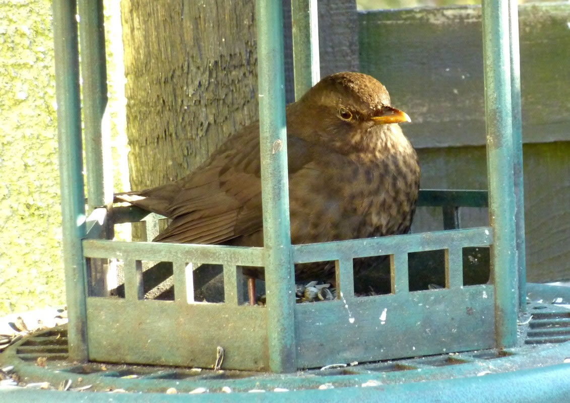 Wenn se dat nu ut Hunger daan harrn, denn wörr ik ja nix seggen man direkt dorneven steiht mien leev Mann sien groot "Vagelvilla", de jümmers goot mit Vagelfoder füllt is. Dor köönt se freten, de Drosseln un Kreihen, man doch nich miene Blomenzibbeln ut de Eerd rieten! Nee dat is ganz un gor nich in Ordnung! Ik heff fix mit dat Vagelvolk schimpt.