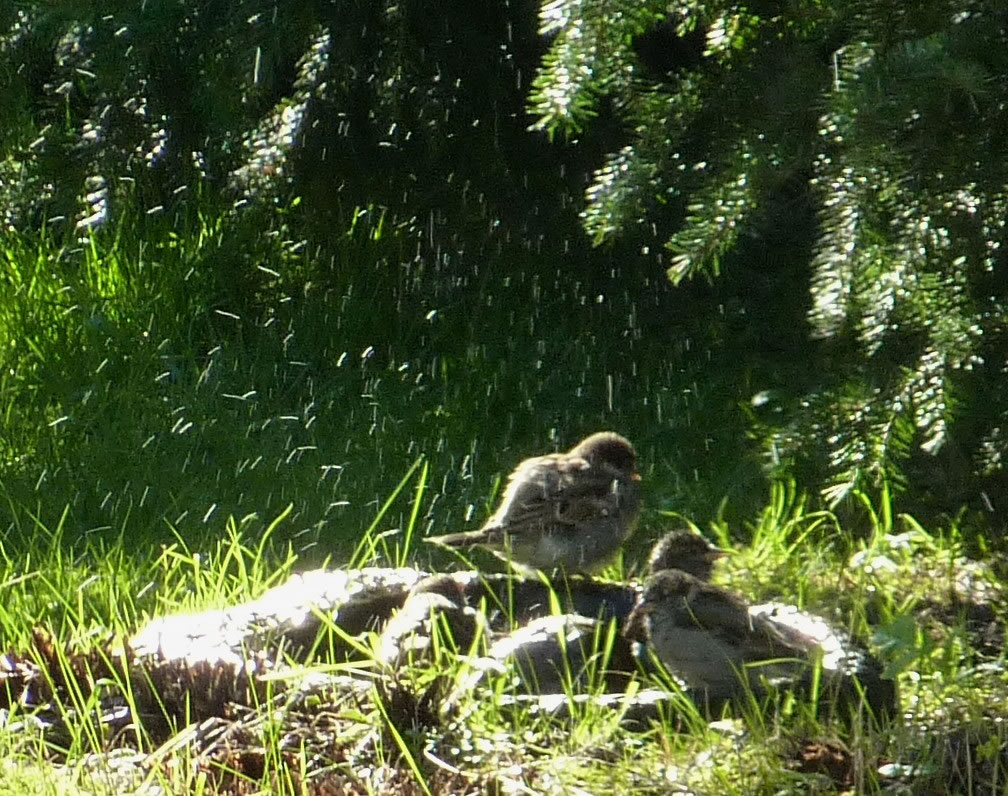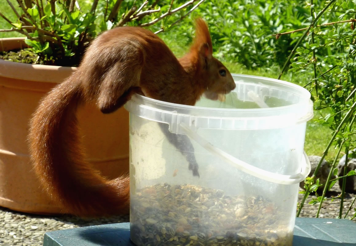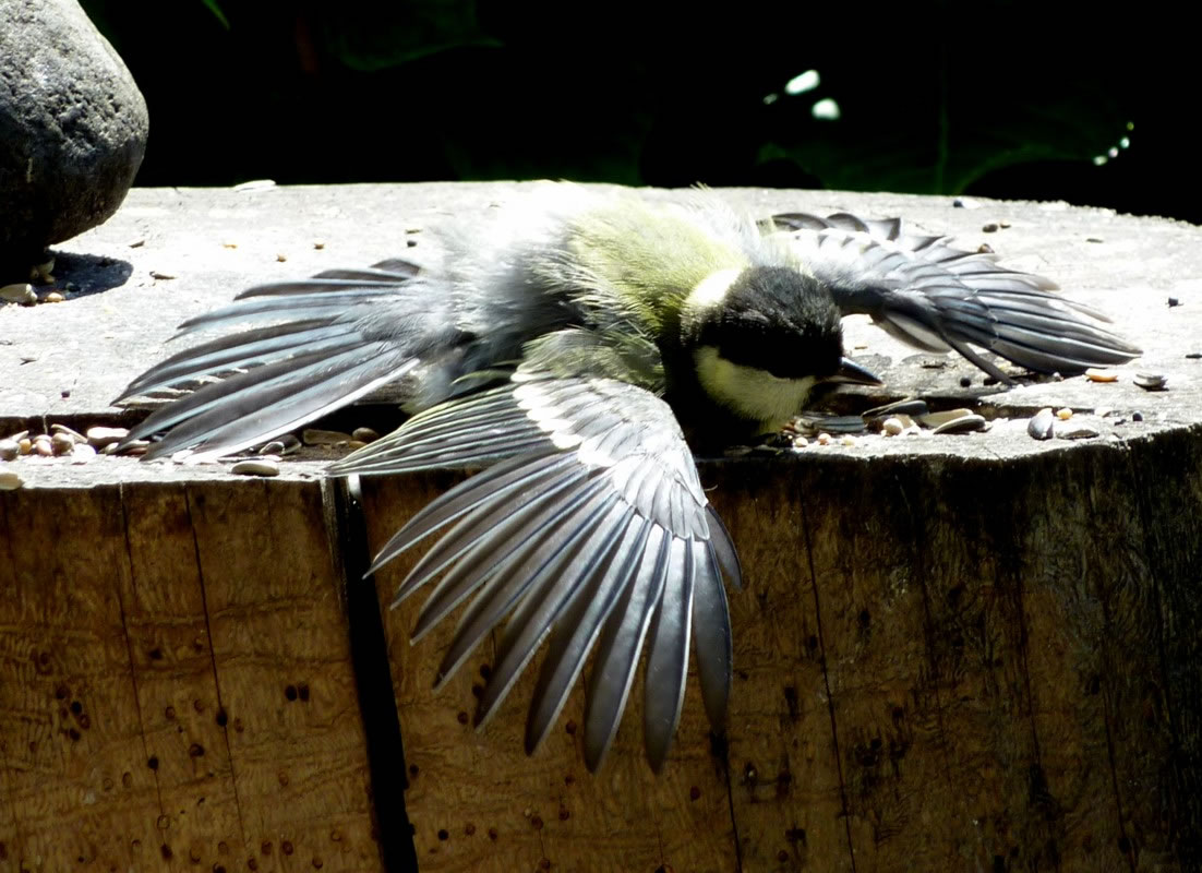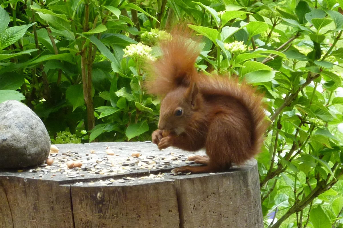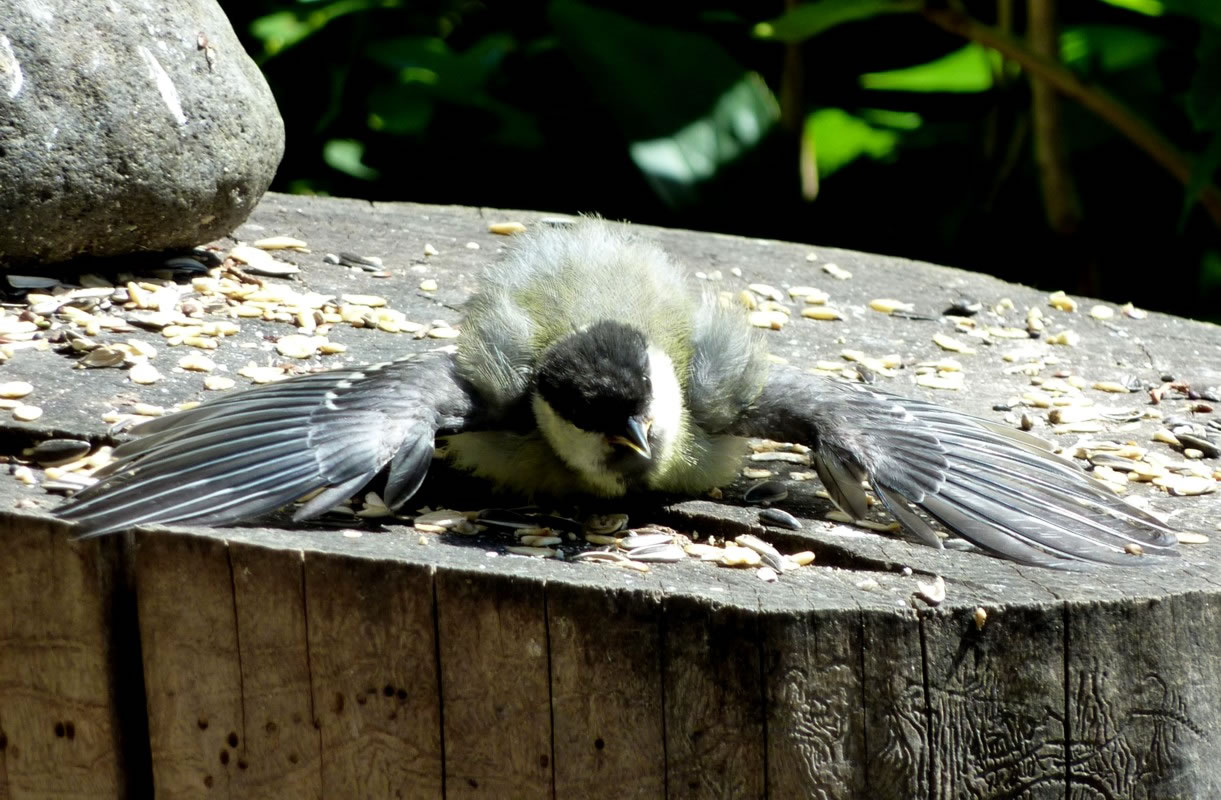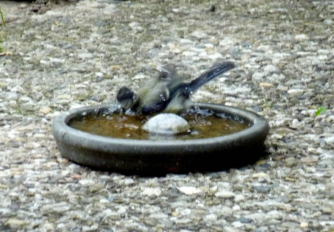 Wenn se dat nu ut Hunger daan harrn, denn wörr ik ja nix seggen man direkt dorneven steiht mien leev Mann sien groot "Vagelvilla", de jümmers goot mit Vagelfoder füllt is. Dor köönt se freten, de Drosseln un Kreihen, man doch nich miene Blomenzibbeln ut de Eerd rieten! Nee dat is ganz un gor nich in Ordnung! Ik heff fix mit dat Vagelvolk schimpt.