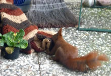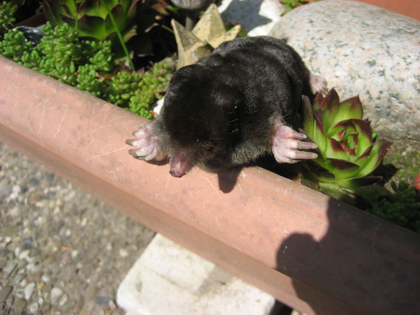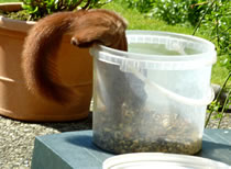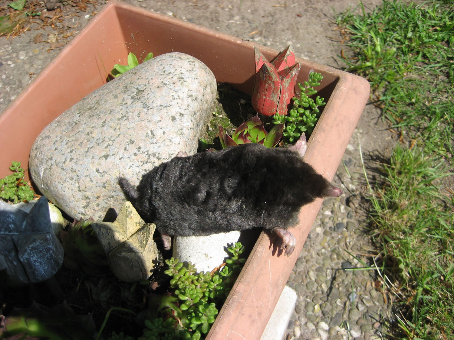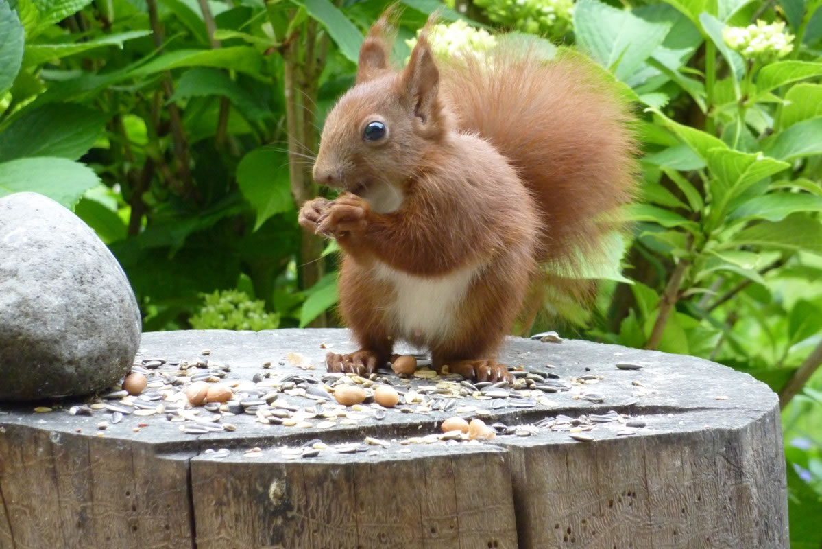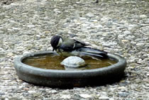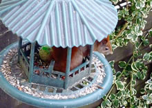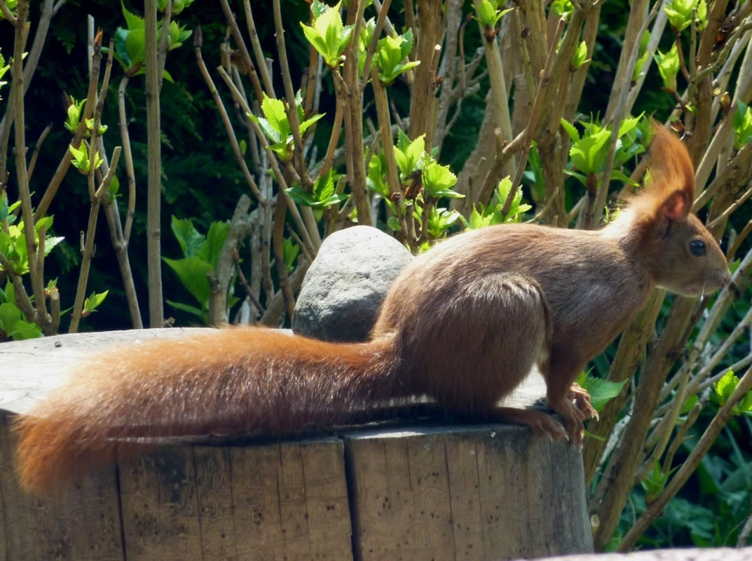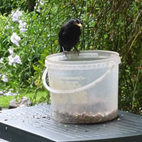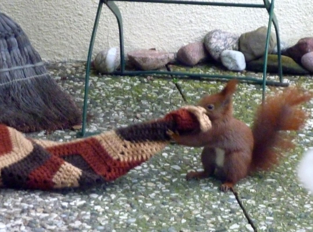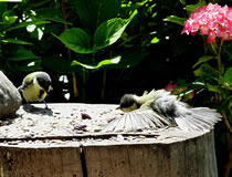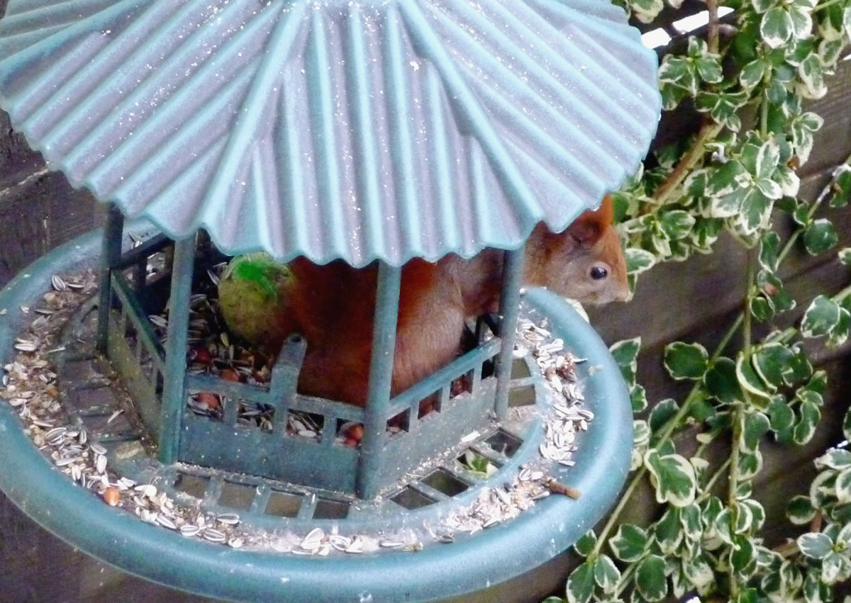 Wenn se dat nu ut Hunger daan harrn, denn wörr ik ja nix seggen man direkt dorneven steiht mien leev Mann sien groot "Vagelvilla", de jümmers goot mit Vagelfoder füllt is. Dor köönt se freten, de Drosseln un Kreihen, man doch nich miene Blomenzibbeln ut de Eerd rieten! Nee dat is ganz un gor nich in Ordnung! Ik heff fix mit dat Vagelvolk schimpt.