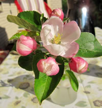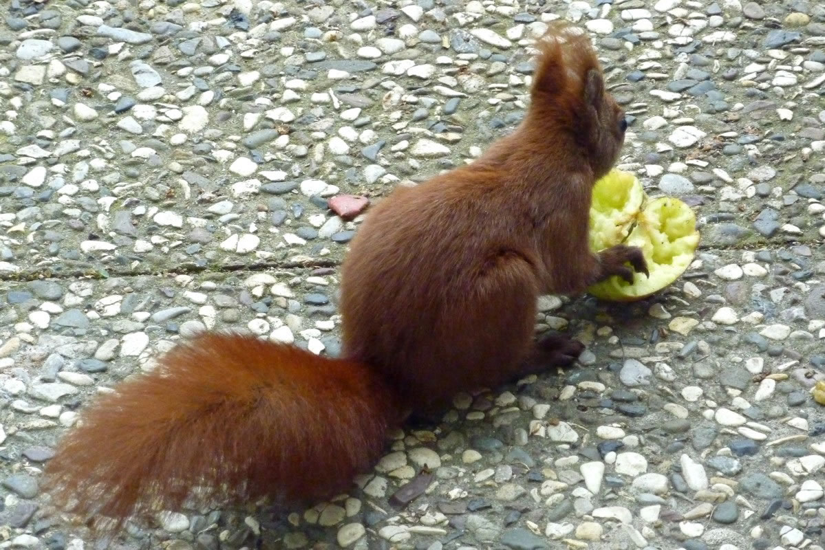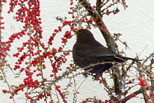 Nu kunn ik ok verstahn, wosück jüüst de Amseln ümmer in den Cotoneaster sitt un de lütten Früchte plöckt. De Amseln freet doch to geern Appels. De Biller köönt Se per Klick