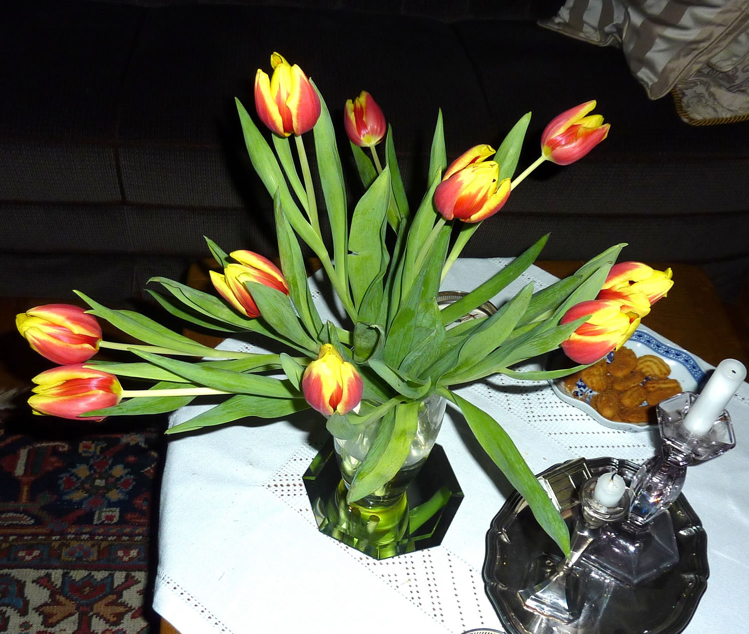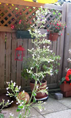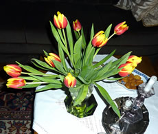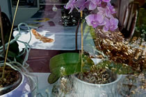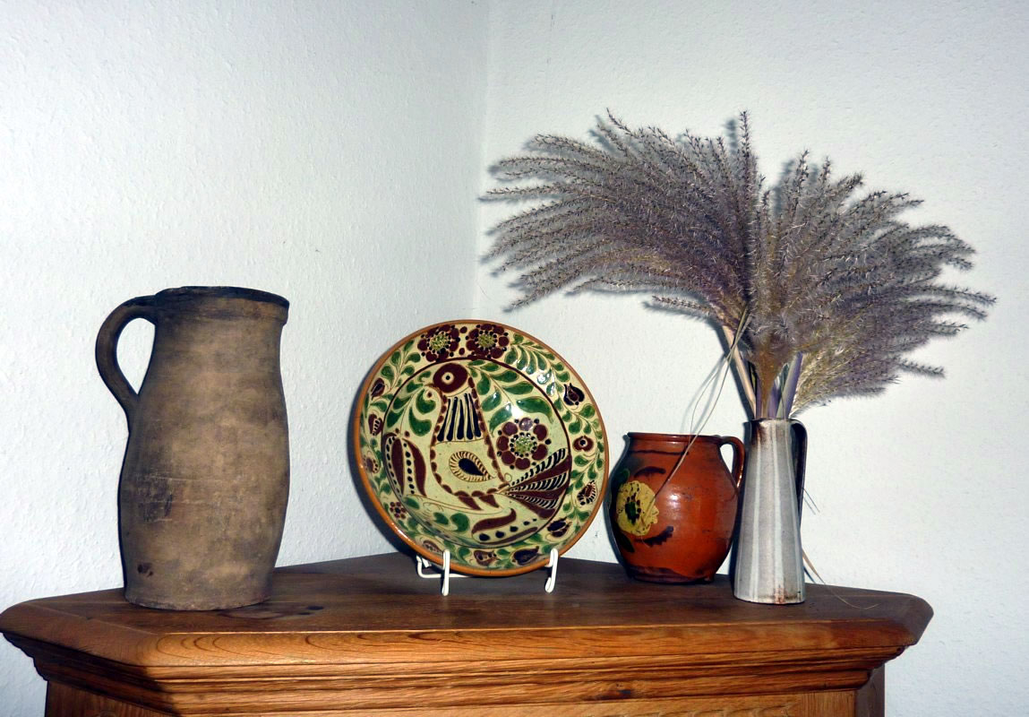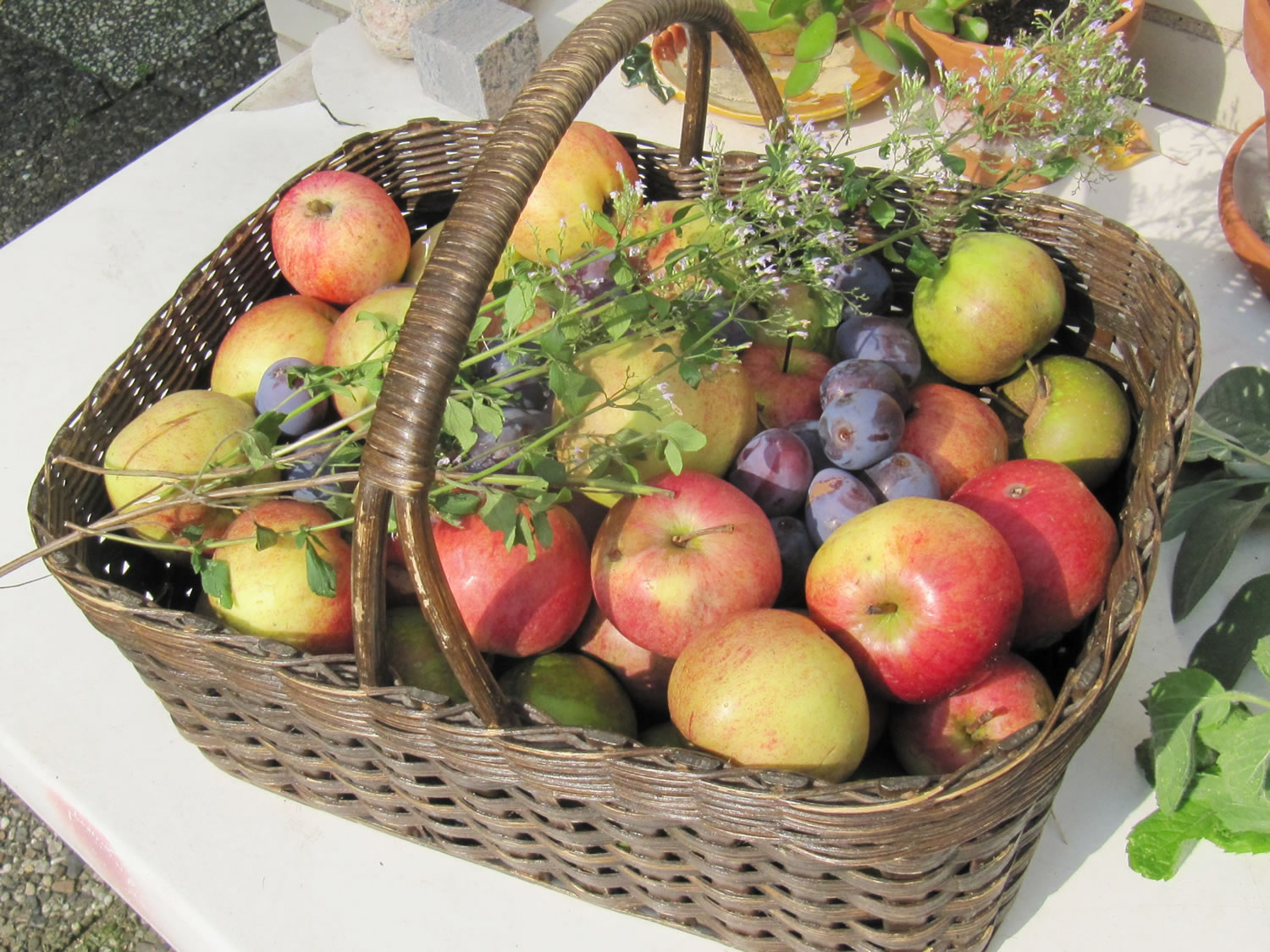 Dat Blatt mit de Galläppel much ik aver nich up mien Kaffeedisch lieden. Ik heff mi en poor Blomen ut mien Goorn haalt un dormit den Disch dekoreert. De Biller köönt Se per Klick
