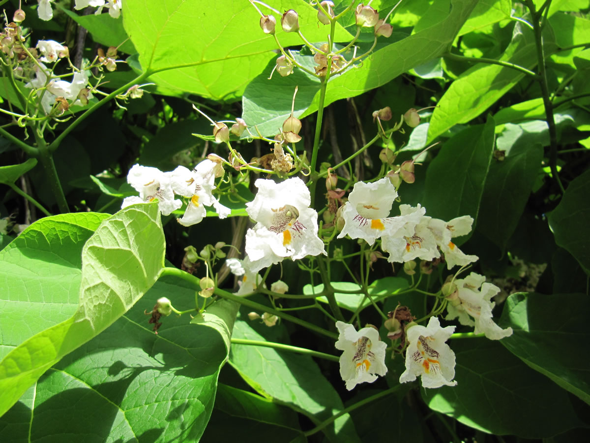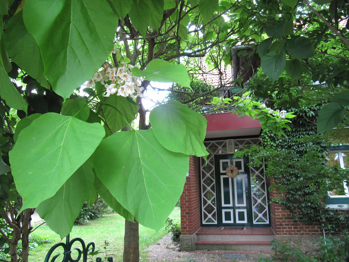 As wi kortens mal dörch den Park vun dat Prinzenpalais in Plön bummeln, dor stünn ik ok miteens vör enen Catalpaboom, un denn freu ik mi. Un in Bosau in enen Vörgoorn heff ik ok enen sehn.