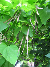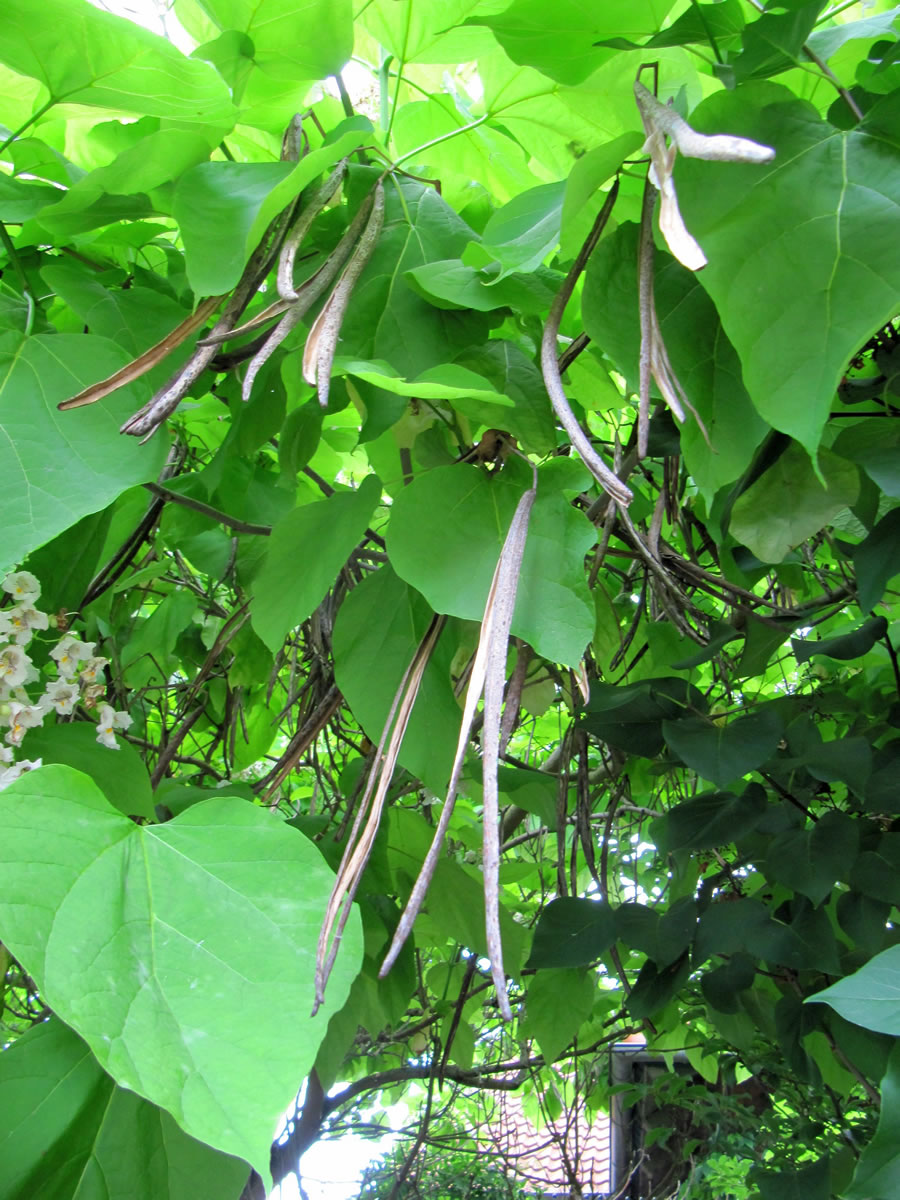 Wegen de langen brunen Früchte warrt de Boom ok Zigarrenboom nöömt. De Früchte blievt lang Tiet an'n Boom hangen. Oft kann een de noch anner Johr sehen, wenn de Boom al wedder blöht. Süh, un up anner Johr freu ik mi nu al, wenn de Catalpa blöht, denn laadt uns Frünnen uns villicht ja wedder in. De Biller köönt Se per Klick