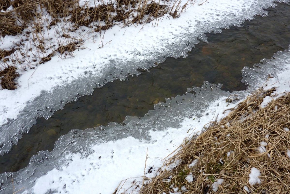 De Snee weer bit up wenige Resten updaut. Sogoor dat Ies up de Seen weer al meist verswunnen. Up uns Utfohrt höörn wi neven uns en lütt Beek murmeln. Se plätscher liesen vör sik hin: "Nu warrt dat Fröhjohr. Ik kann mi wedder richtig bewegen, mien Water löppt vun ganz alleen den Barg hindaal!"