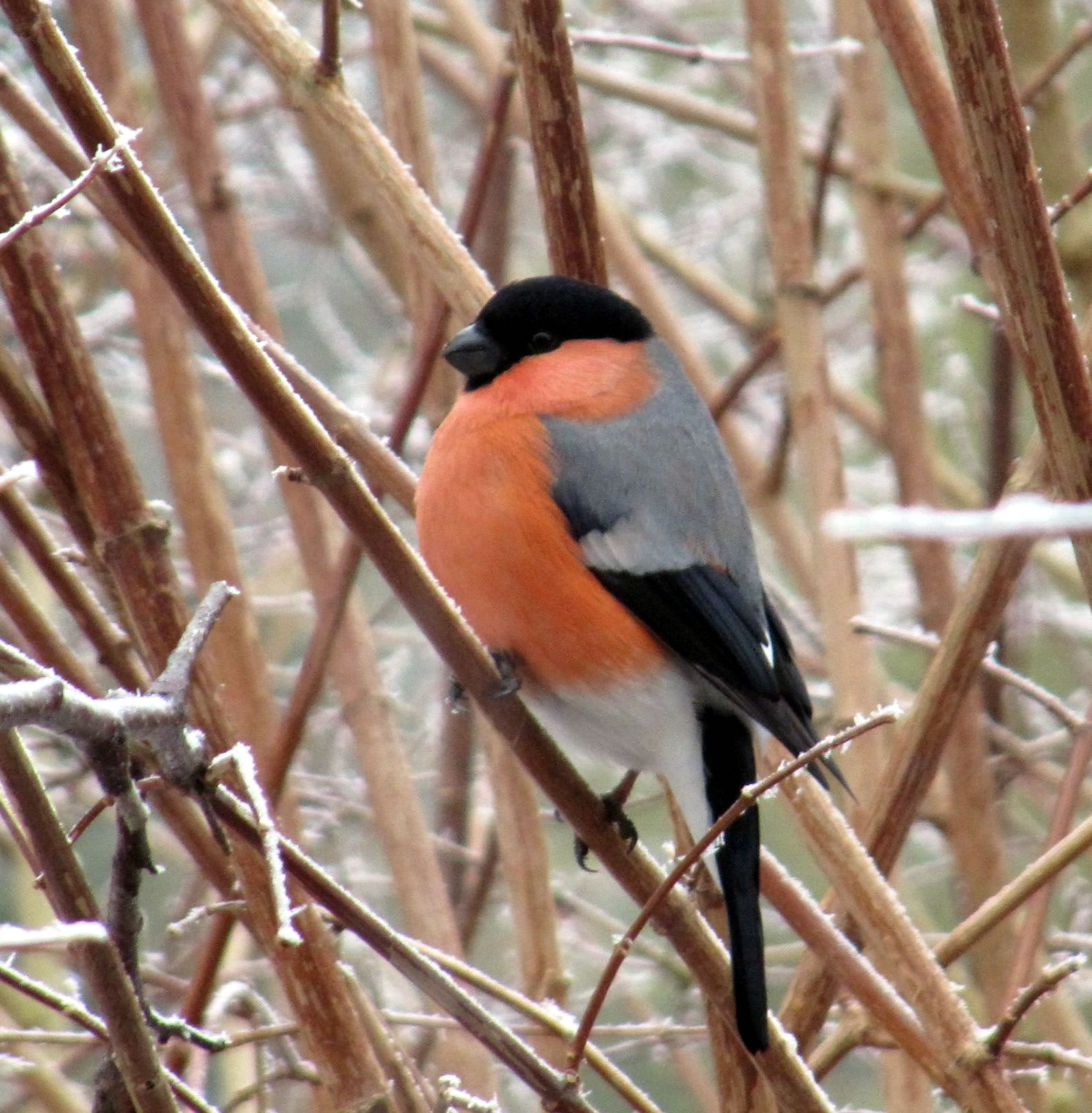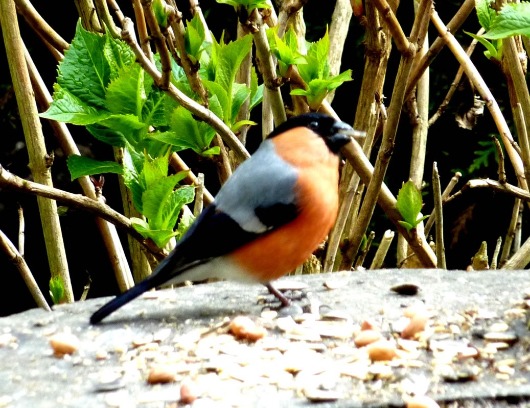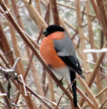 "Herr Gimpel" nöömt. Disse Vagels besöökt uns in'n Winter veel. Mien leef Mann