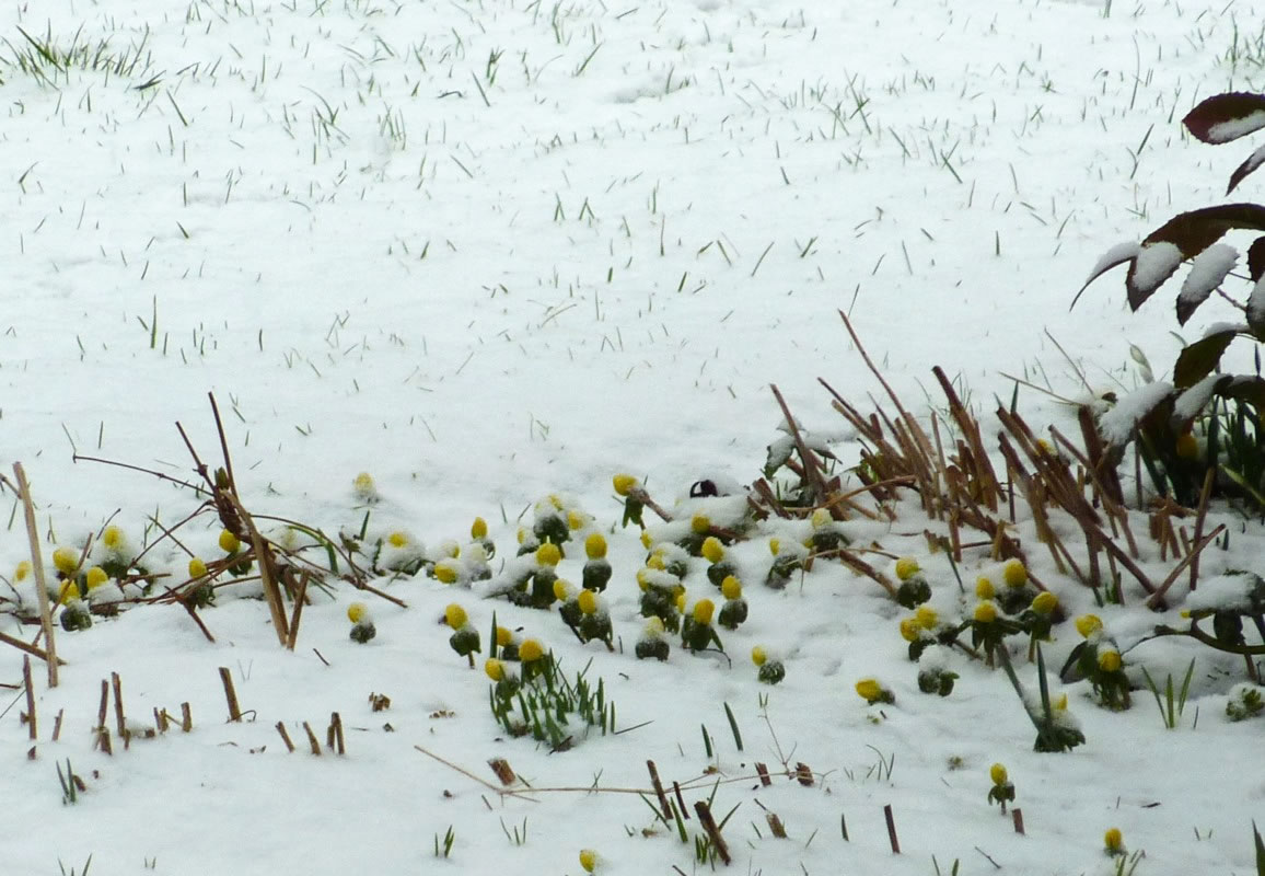 Teemlich laat hett sik dittmal de Winter mit Ies un Snee bi uns mellt.Toeerst sehg dat so ut, as wenn dat enen ganz milden Winter geev. De lütten Fröhblöher keken al neeschierig ut de Eer. Dat weer en Freud, se antokieken. Ok de lütten Vagels hebbt sik verdahn. Manch een weer al up Bruutschau. Denn aver, an Enn vun den Januarmaand, keem doch noch över Nacht de Winter mit scharpen Frost un Snee in Sleeptau! Dat froor Steen un Been. De lütten Planten fullen vör Küll üm. Ok de warme Sneedeek reck nich ut. De keem to laat.