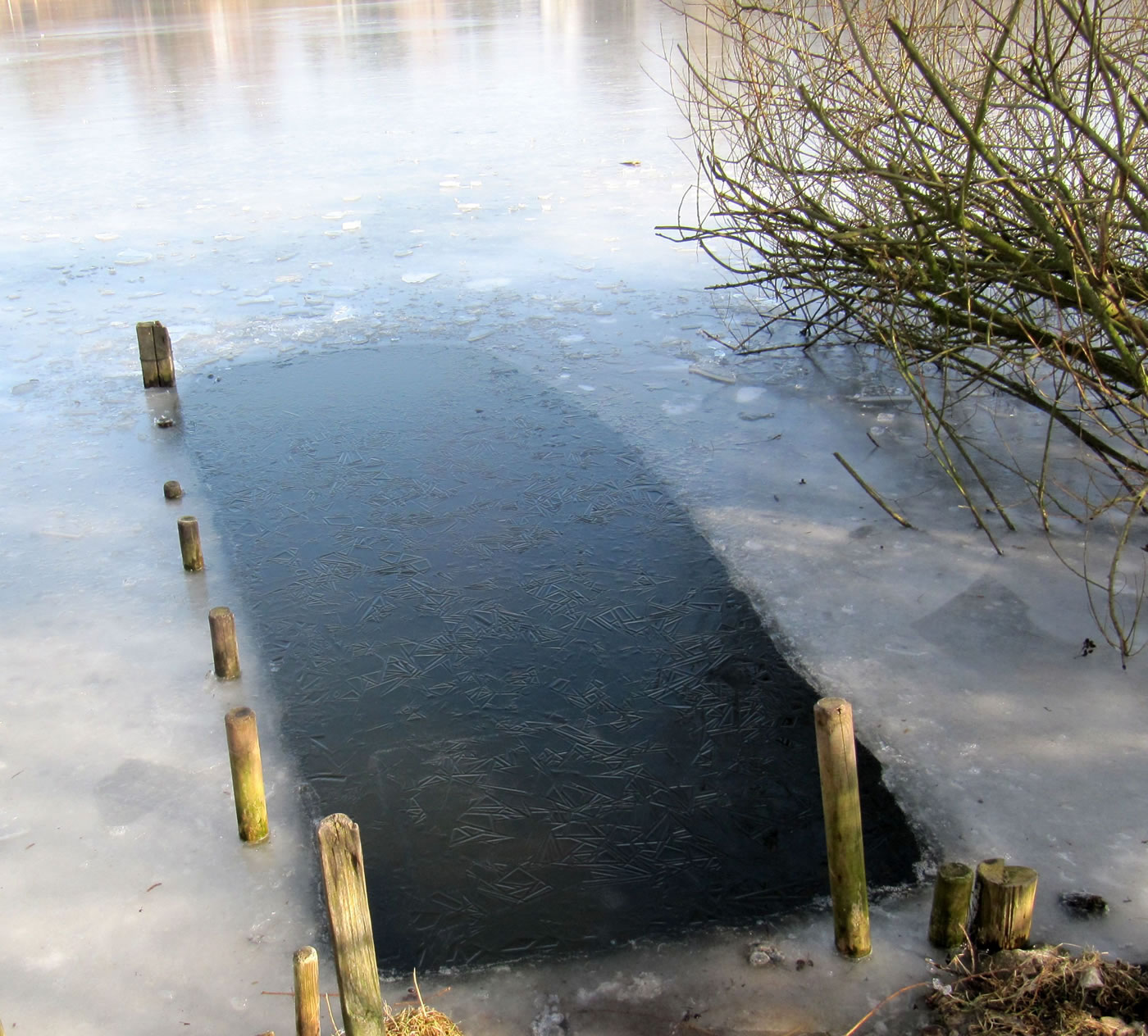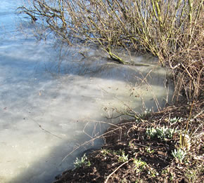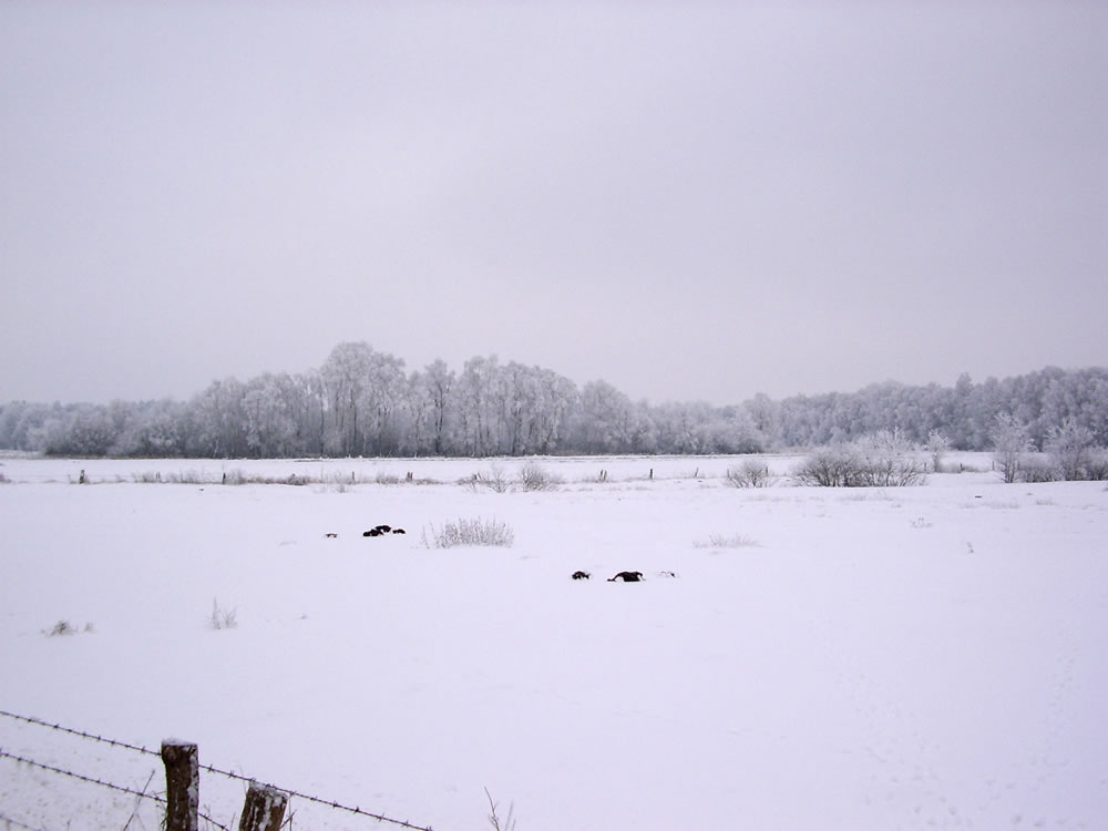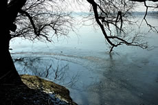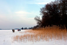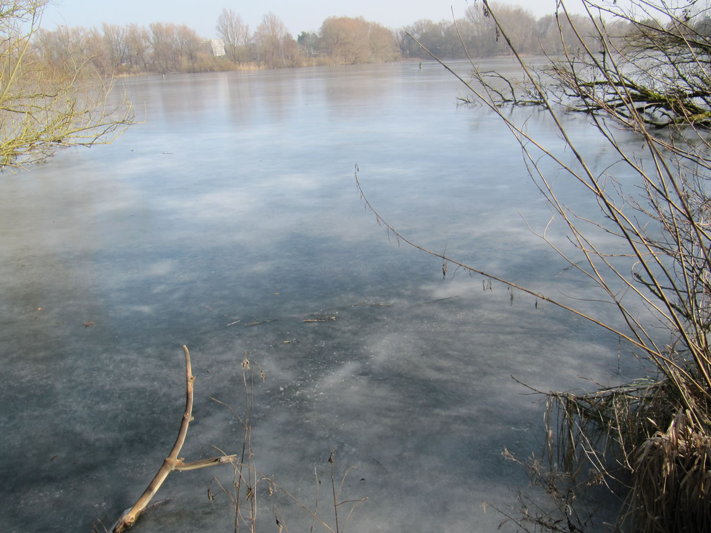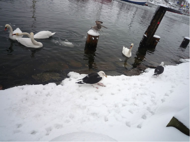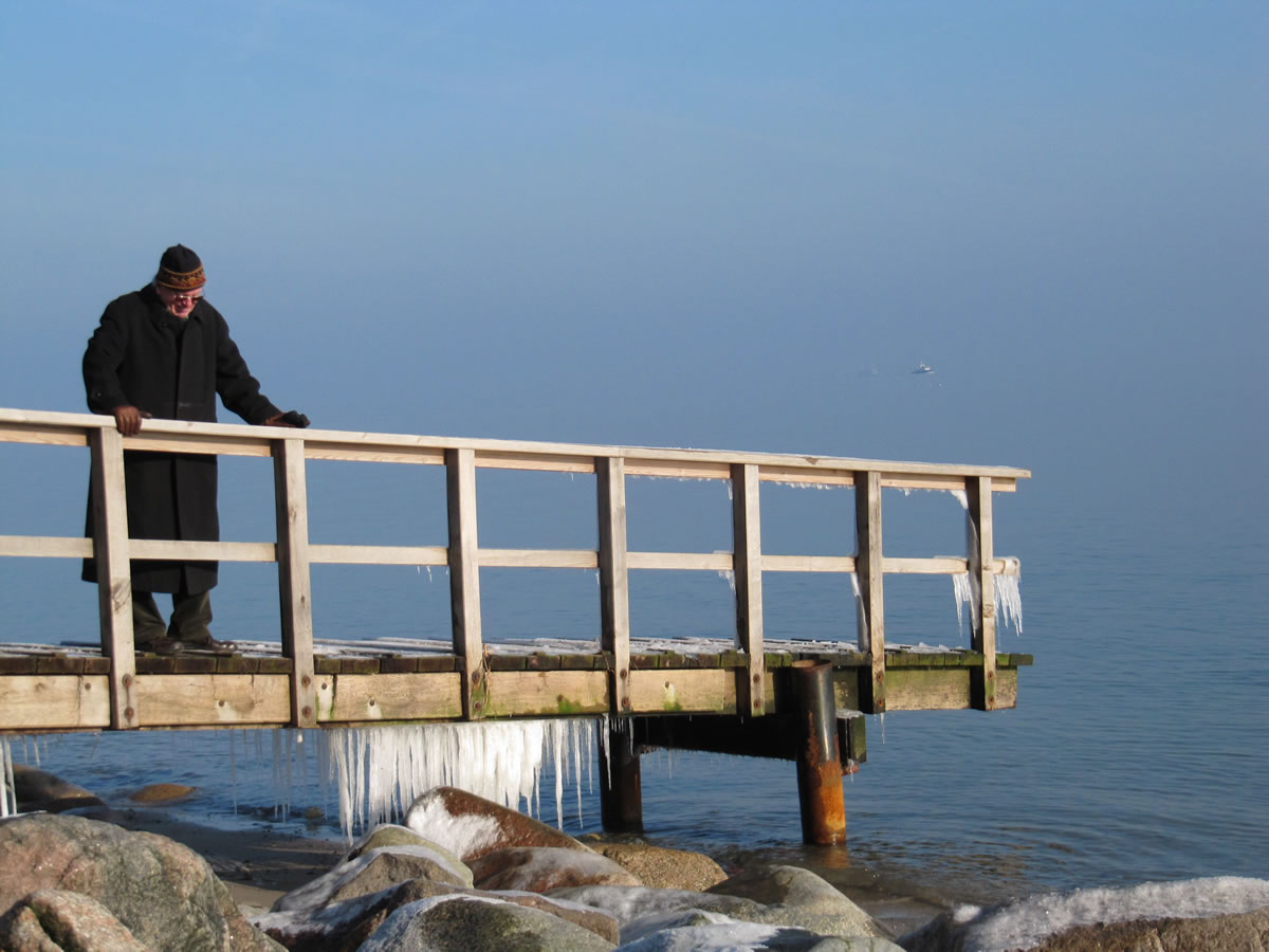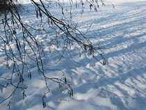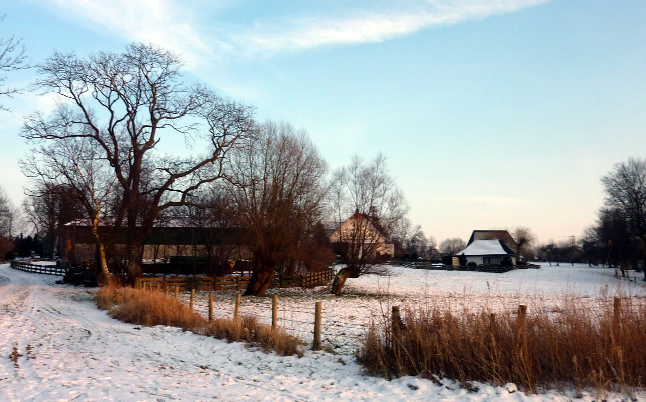 12.2.12 . .So schöön kann Winter sien! Dat weer noch düster. In de Nacht harr dat Steen un Been froren. Dat Thermometer wies an'n Moorn 15°C Minus. Brrr! Wat weer dat koolt! Am leevsten weer ik glieks wedder in mien warmes Bett kladdert. Aver dat güng nich, ik wull hüüt noch allerhand up de Reeg bringen. In de Twischentied weer de Sünn opgahn. Se lüüch vun schiern blagen Heven. De ersten Strahlen keken al in't Finster. Dat sehg na enen herrlichen Winterdag ut. "Den mütt wi geneten", meen ik bi't Fröstück to mien Mann. Na't Meddageten trocken wi uns warm an. Över versniete Dörper güng uns Fohrt na Wilmsdörp. De Sünn stünn al teemlich deep. Ehr güllen Strahlen glemen dörch de Bööm över den Hemmelsdörper See. Wi wullen in den Seepavillon en Tass Kaffee drinken.