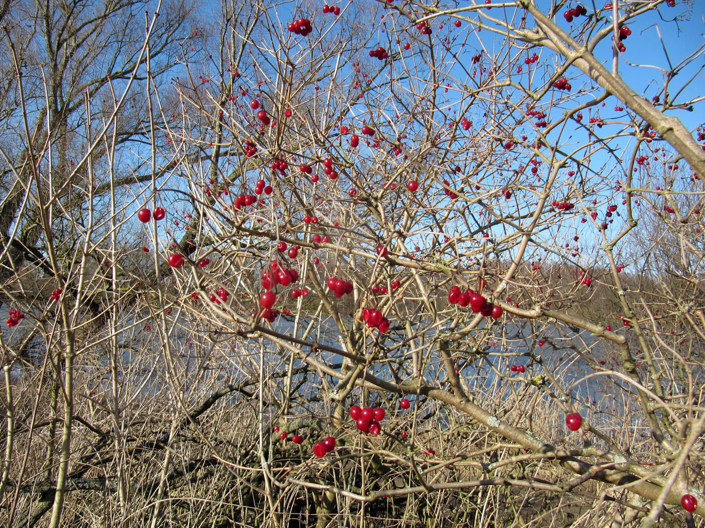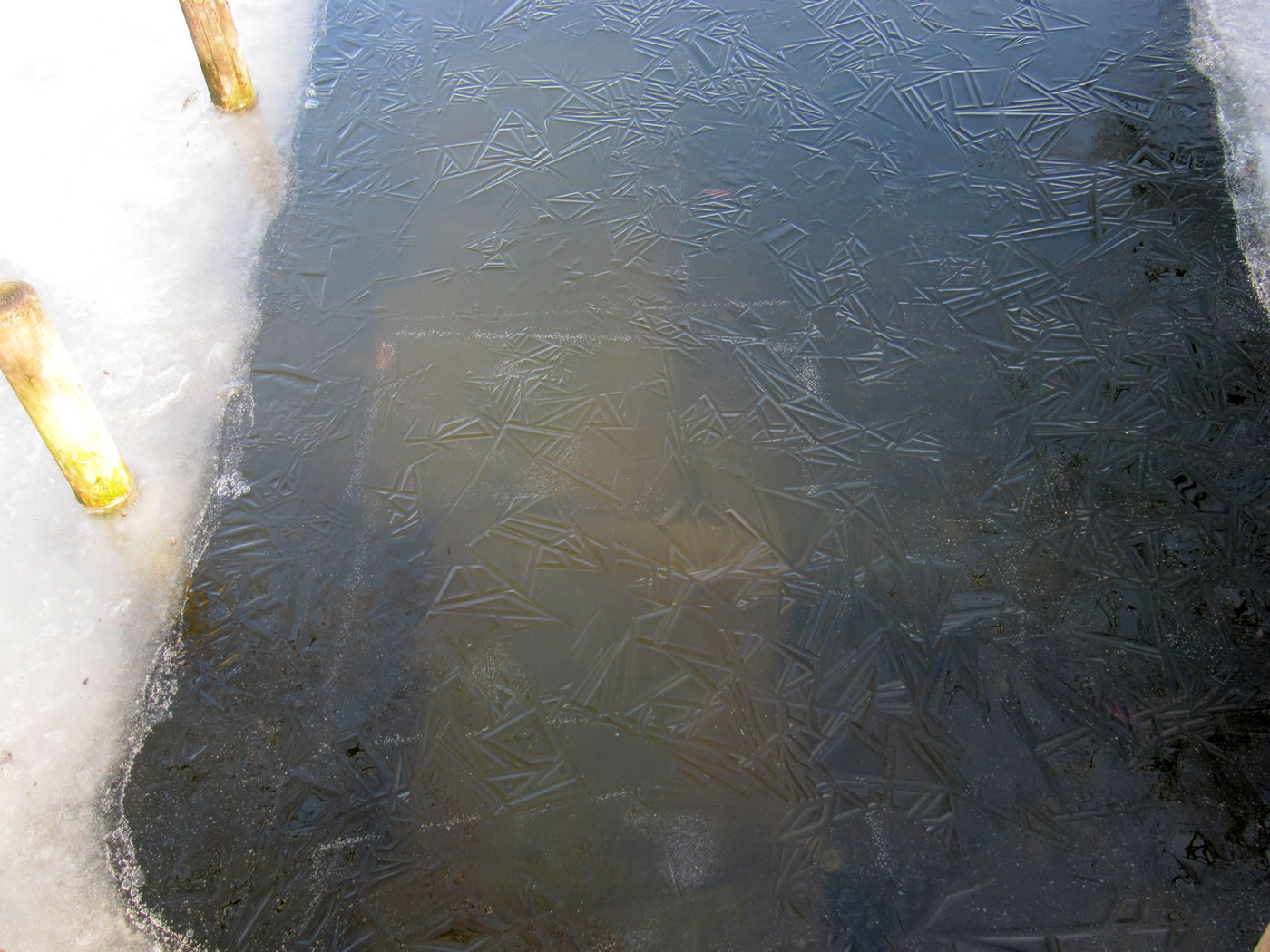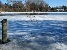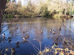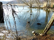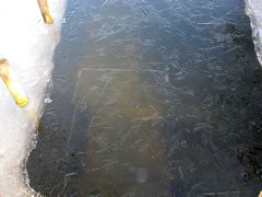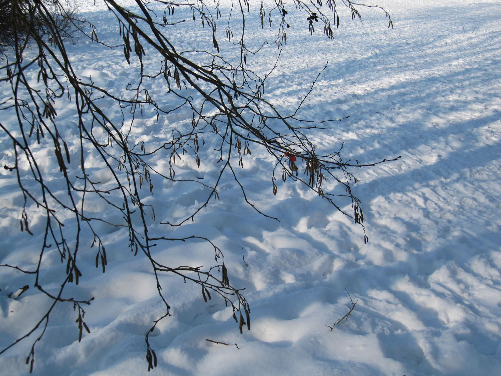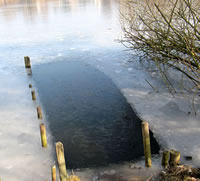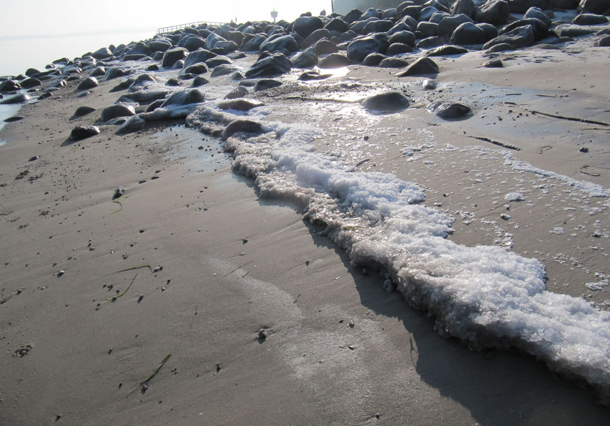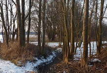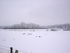 12.2.12 . .So schöön kann Winter sien! Dat weer noch düster. In de Nacht harr dat Steen un Been froren. Dat Thermometer wies an'n Moorn 15°C Minus. Brrr! Wat weer dat koolt! Am leevsten weer ik glieks wedder in mien warmes Bett kladdert. Aver dat güng nich, ik wull hüüt noch allerhand up de Reeg bringen. In de Twischentied weer de Sünn opgahn. Se lüüch vun schiern blagen Heven. De ersten Strahlen keken al in't Finster. Dat sehg na enen herrlichen Winterdag ut. "Den mütt wi geneten", meen ik bi't Fröstück to mien Mann. Na't Meddageten trocken wi uns warm an. Över versniete Dörper güng uns Fohrt na Wilmsdörp. De Sünn stünn al teemlich deep. Ehr güllen Strahlen glemen dörch de Bööm över den Hemmelsdörper See. Wi wullen in den Seepavillon en Tass Kaffee drinken.