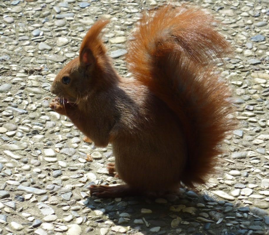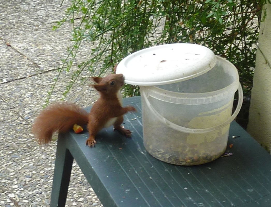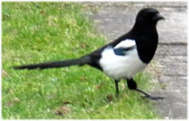 "Schack karack", luut, unmelodisch. Kaamt de Heisters aver an uns Futterhuus, denn verswindt all uns annern Gäst. De lütten Vagels hollt Afstand. Un uns Vagelhuus uns Vagelvilla is so groot, dat de Heister licht dor rin passt. Un se hollt en rieklich Mahltiet, freet allens, wat mien leef Mann dor rinstreut hett. Ik find, dat se rein so'n beten frech sünd, dreist, se doot so, as höör allens se to. Mal dor harrn wi enen ganz seltsam Vagel in uns Vagelhuus to Besöök. Swatt-witt, man gor keen Steert. Eerst as de Vagel luut un unmelodisch en "Schack karack" höörn leet, dor mark ik, dit weer en Heister, de sien Steert verloren harr. Possierlich antokieken! De Biller köönt Se per Klick