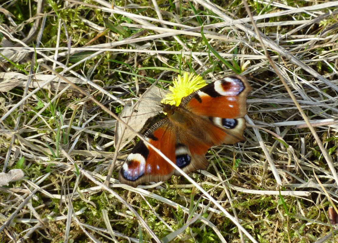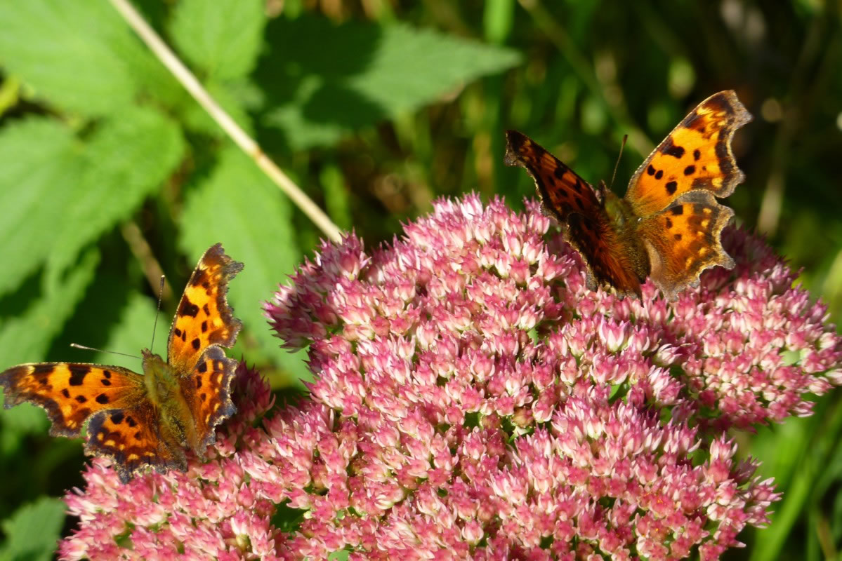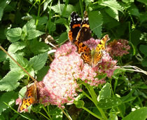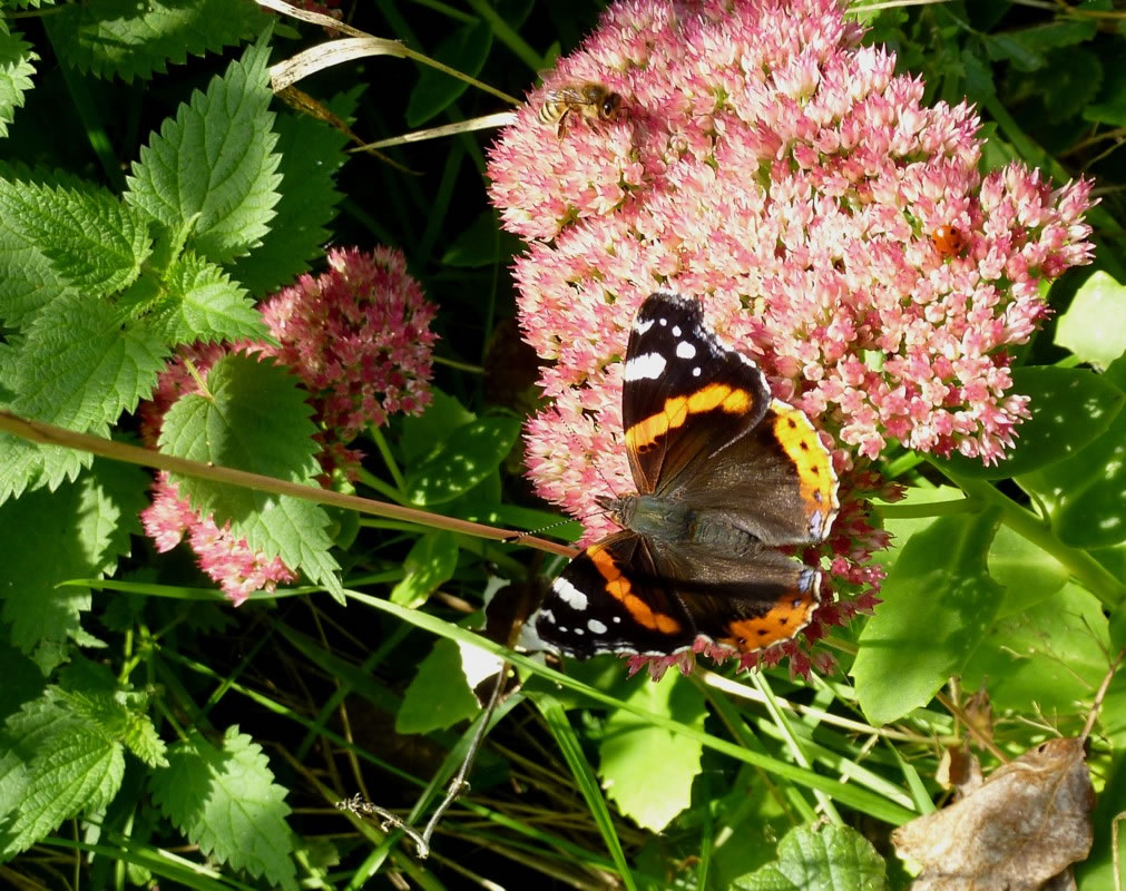 Lütt geel Blomen an'n Wegrand mit ganz veel Blöden leten mi vun mien Fohrrad afstiegen. De Blomen wull ik genauer bekieken. Dor sett sik jüüst vör mi en smucken Bottervagel up en Blööt. Dat weer en Admiral! Gau haal ik mienen Knipskassen ut de Tasch. Dor weer de Bottervagel aver al in den Knick flagen. Ik achterna! Mit sien smucken Farven wies de Admiral mi den Weg. Ik kunn em noch goot mank all de Brennetteln utmaken. Nu sett he sik up en rosa Blööt vun en Fetthenne. De Bloom stünn meern mank dat Nettelkruut. Ik bahn mi vörsichtig enen Weg un güng achterna. Dor kemen noch twee smucke Bottervagels anflagen. Dat weern C-Falter. All dree seten up en Blööt, klappen ehr Flünken up un to un leten sik dat in de warme Oktobersünn goot gahn.