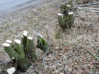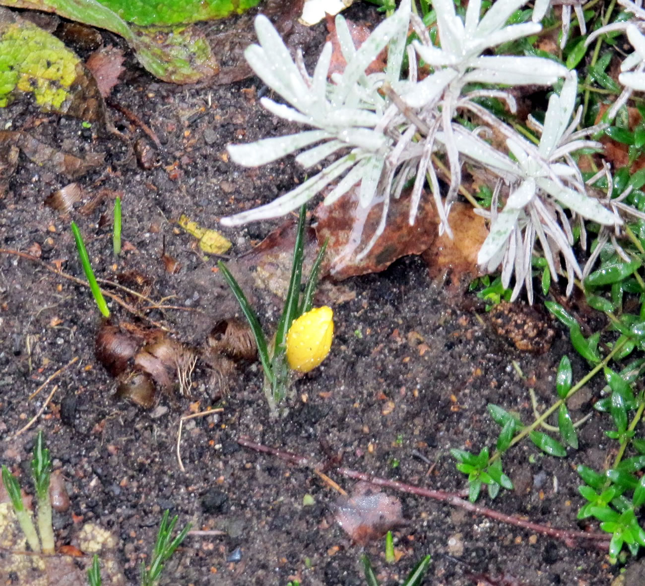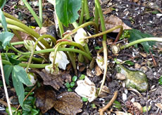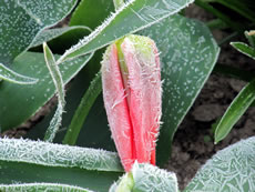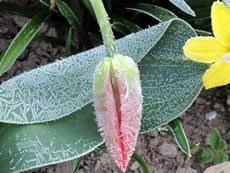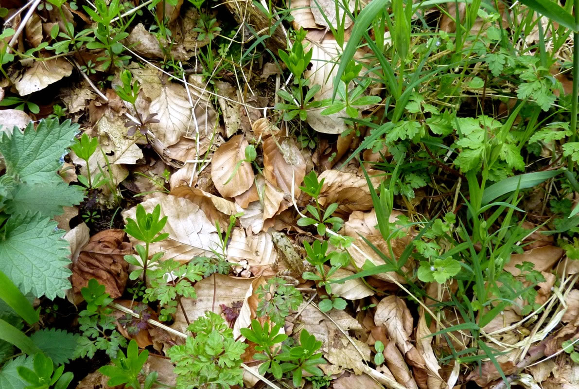 Wat he dor mit Frostschaden trüchlaten hett, is richtig trurig. Vele lütte Planten bleven up de Streck, se kunnen sik nich verhalen. Se legen platt up de Eer. Ok de erste warme Sünnenschien kunn ehr nich mehr helpen. Wüllt blots höpen, dat de Winter nich noch mal wedder trüch kümmt. Poor Daag later keken aver doch wedder eenige vun de velen ümknickten Blöden in de Hööcht. Mit so veel Kuraasch vun de Planten hett sülvst de Winter nich reekt. De Biller köönt Se per Klick