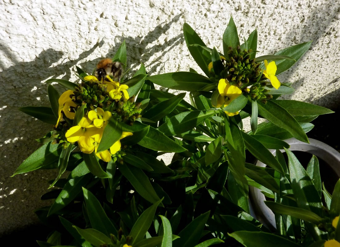 Wat för en Freud! In mien Goorneree heff ik den Güllack wedder funnen. Ik höör noch mien Tante ropen: "Kiek mal, de Gülla blöht al, ik heff dat al vun wieden raken!" Denn hett se mi de Bloom wiest un mi an de Blööt snuppern laten. Dat weer meist so, as wenn ik de Nees in Viölchen steek. Domaals weer ik noch en lütt Deern. De Güllack weer fröher in jeden Buurngoorn antodrapen. Aver denn keem he ut de Mood. Weer doch kloor, dat ik mi enen Güllack mit na Huus nehm. Dor keem he mit twee anner Blomenplanten in enen smucken Putt. Sien goden Ruuch weih nu glieks över de Terrass. Dat hebbt ok de ersten Hummeln raken. De weern al ut den Winterslaap upwaakt. In de warme Avendsünn keem sogoor en Königin vun de Ackerhummeln to Besöök. Se flöög vun Blööt to Blööt. Se kunn gor nich noog vun den frischen Nektar kriegen. In all de Johrn heff ik blots ganz selten mal en Güllack sehn. Nu stünn en Güllack up mien Terrass un verströöm sien goden Ruuch. Ik müss veel an mien leev Tante dinken! In de Blomenspraak steiht Güllack för "Sehnsucht", ik sehn mi na di! Dat do ik ok! Mit sien güllen Klöör un sien goden Ruuch vertövert he mi. De Biller köönt Se per Klick