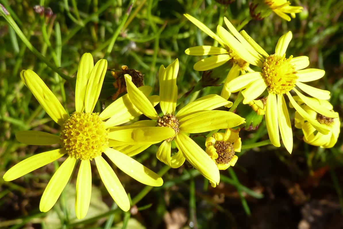 Ik heff geern smucke Blomen up mienen Disch. Aver düsse giftigen Schöönheiten plück ik nich wedder. Hoffentlich heff ik in't neegst Johr keen geel Greiskruut in mien Goorn. De Biller köönt Se per Klick