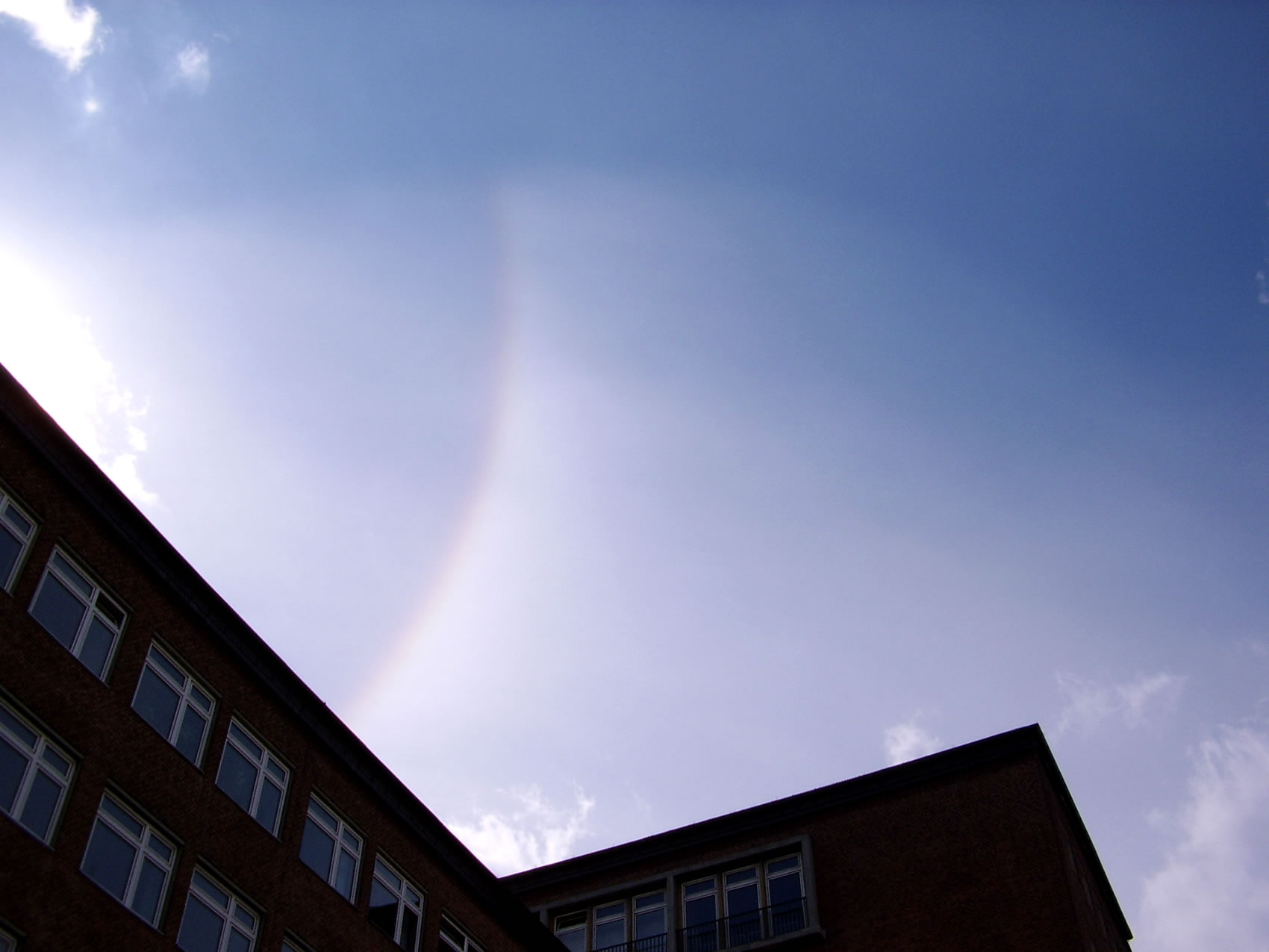 Düssen wunnerschönen Sünnen-Halo heff ik an'n Dingsdag, den 17., merrn in Hamborg opnahmen. Wat de Halo is un woans he tostann kümmt, köönt Se hier nalesen. De lütte Wulkenslier, de den Halo mööglich maak, weer Minuten later verswunnen. Se köönt dat Bild per Klick vergröttern. Marlou Lessing