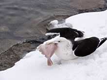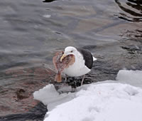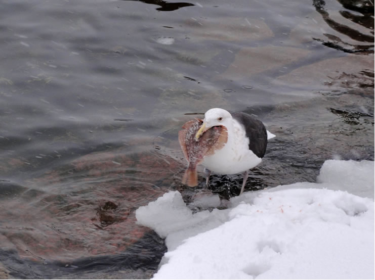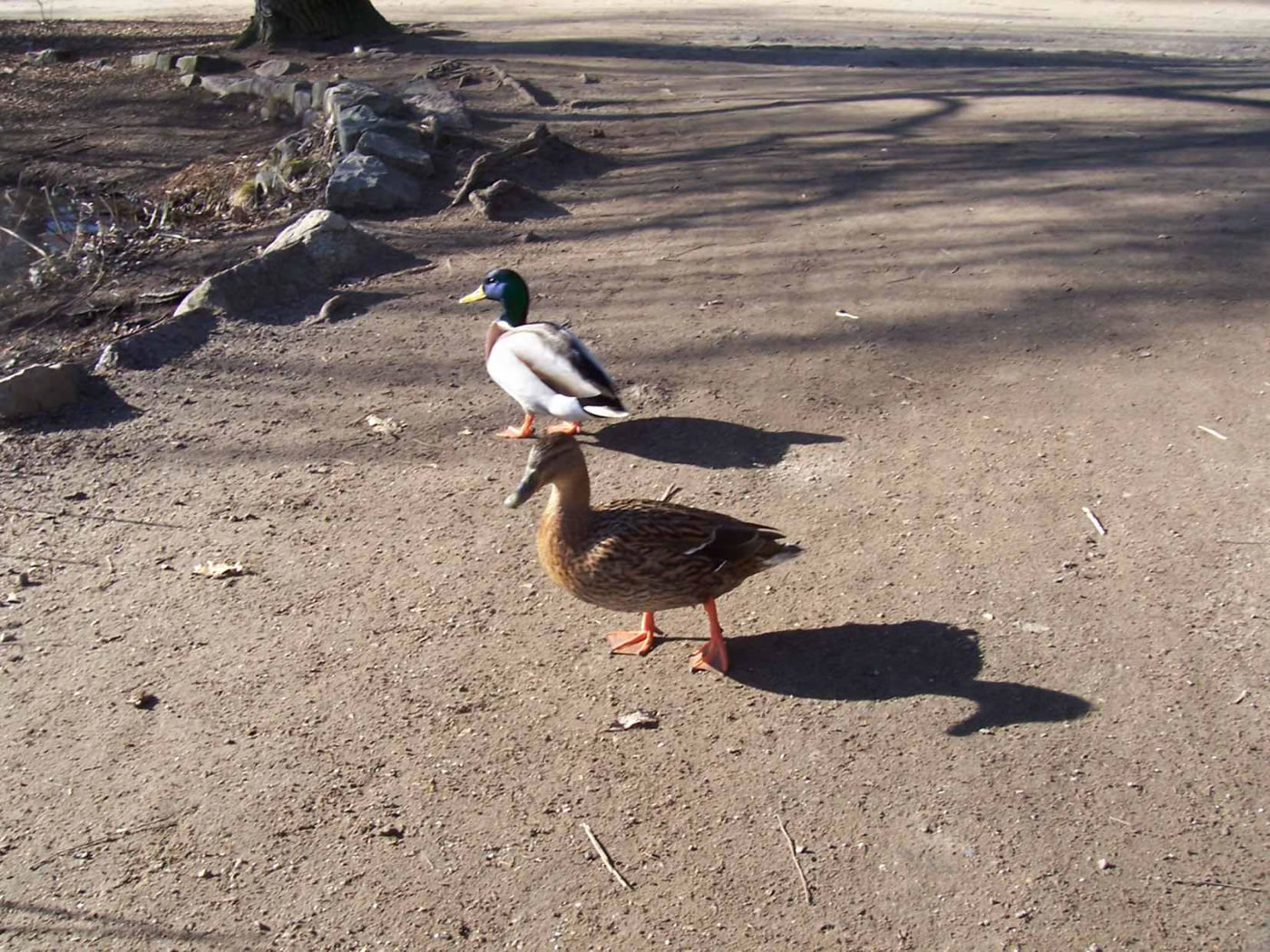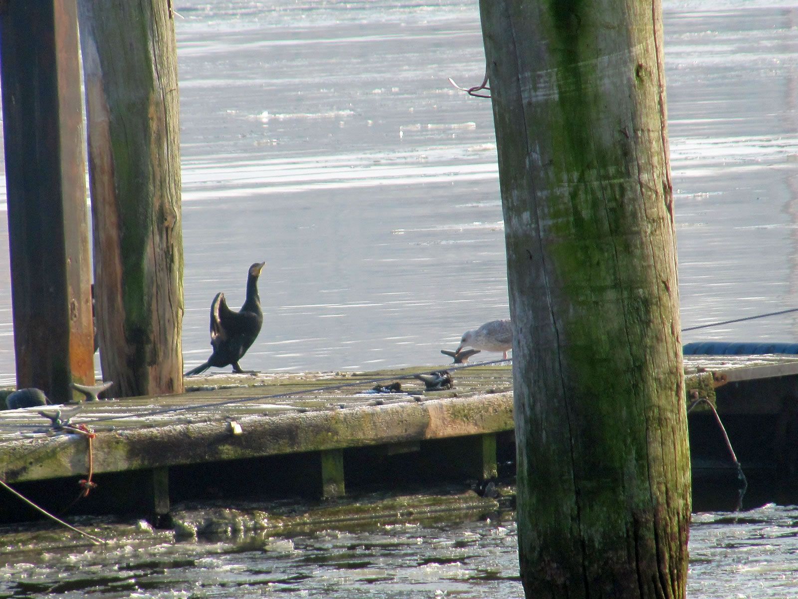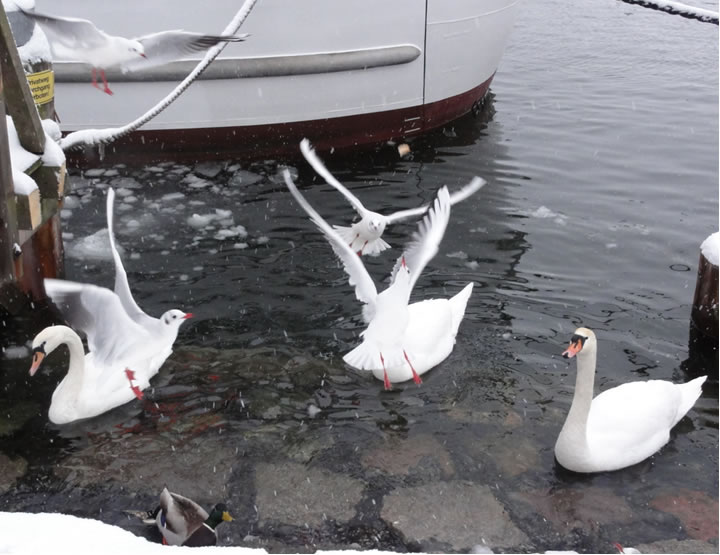 Glieks kemen welk answommen un kladdern ok up dat Ies. Dat weer en fröhlich Gesnatter. Immer mehr Aanten kemen an. Welk weern al an't Gründeln. En Aantenfru bleev aver lever up enen Reethupen in de Sünn. Se blinzel mi an, as wull se seggen: "Mi is dat Water noch to koolt!"