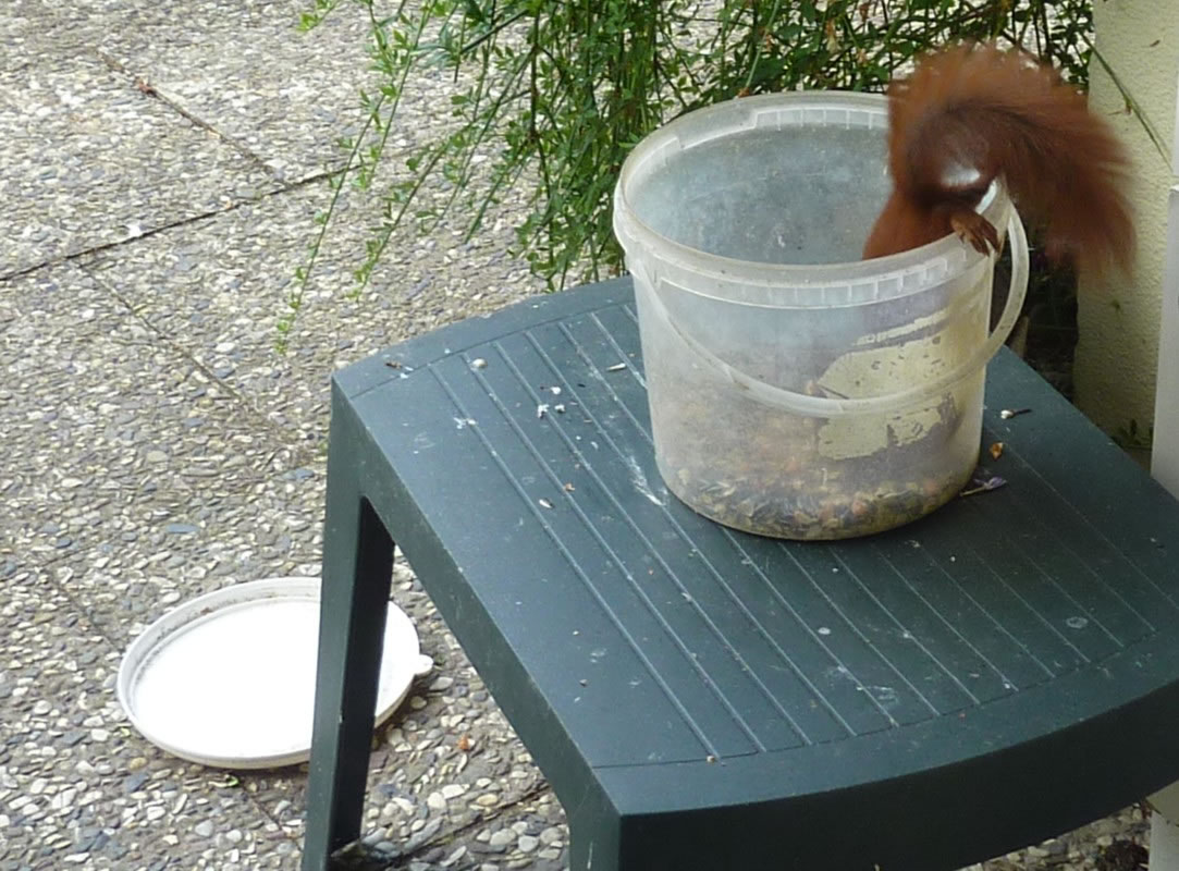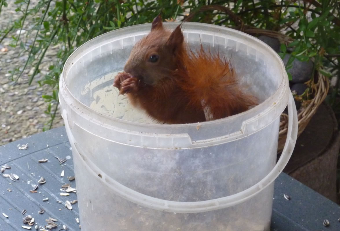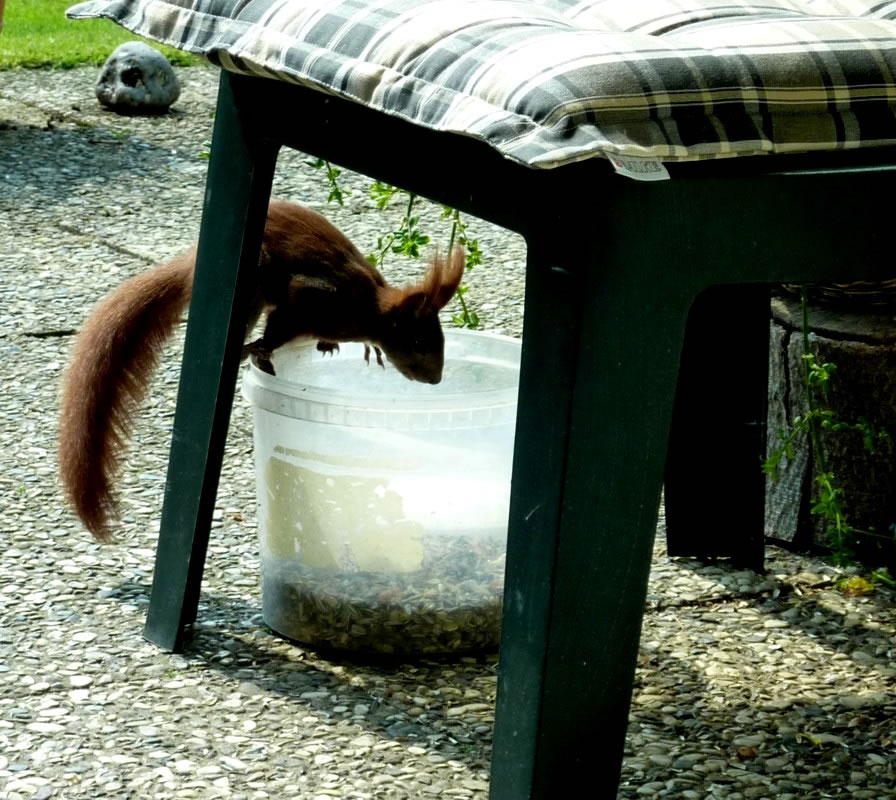 streut wohl jüst de Körner ut, de Dompfaffen geern freten.