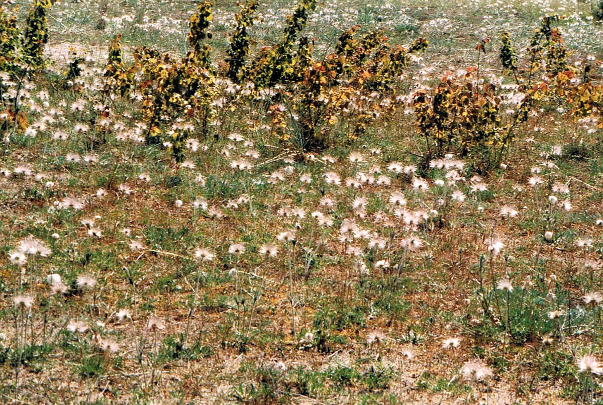 Richtig goot gefallt mi de Küchenschellen, wenn se utblöht un flauschig Flaumhoor-Kugeln utbildt hebbt. Ik find disse Samenstände hübsch. De lialütten Nööt, de in disse flauschig Kugeln sitt, köönt goot vun 'n Wind wegweiht warrn. So köönt denn grote Flächen mit Samen versorgt warrn. Ik heff mal up Gotland ganze Wischen vull mit Küchenschellen sehen ik heff keken un staunt, mi dor an freut. De düütsche Naam för de Pulsatilla vulgaris is Kohschelle un ok Küchenschelle. Küchenschelle hett aver rein gor nix mit uns Köök uns Köken to doon. De Naam stammt vun de lütte Koh, "kleine Kuh", also Küh-chen. De Schelle in den Naam kümmt vun de Blöden, de utseht as lütte Glocken.
