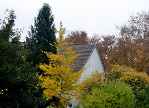 En lütten Eekboom stünn dor ganz alleen in de Harvstsünn up den Knick. He harr anschienend al sien Harvstkleed antrocken. En poor bunte Bläder lüchen in de Sünn. Dorvun wull ik mi en poor plücken un mien Kaffeedisch dormit dekoreern.