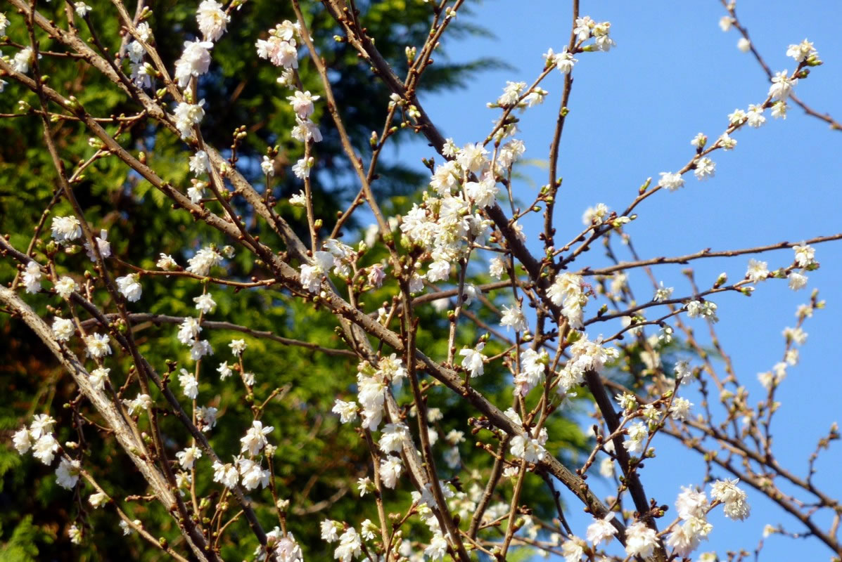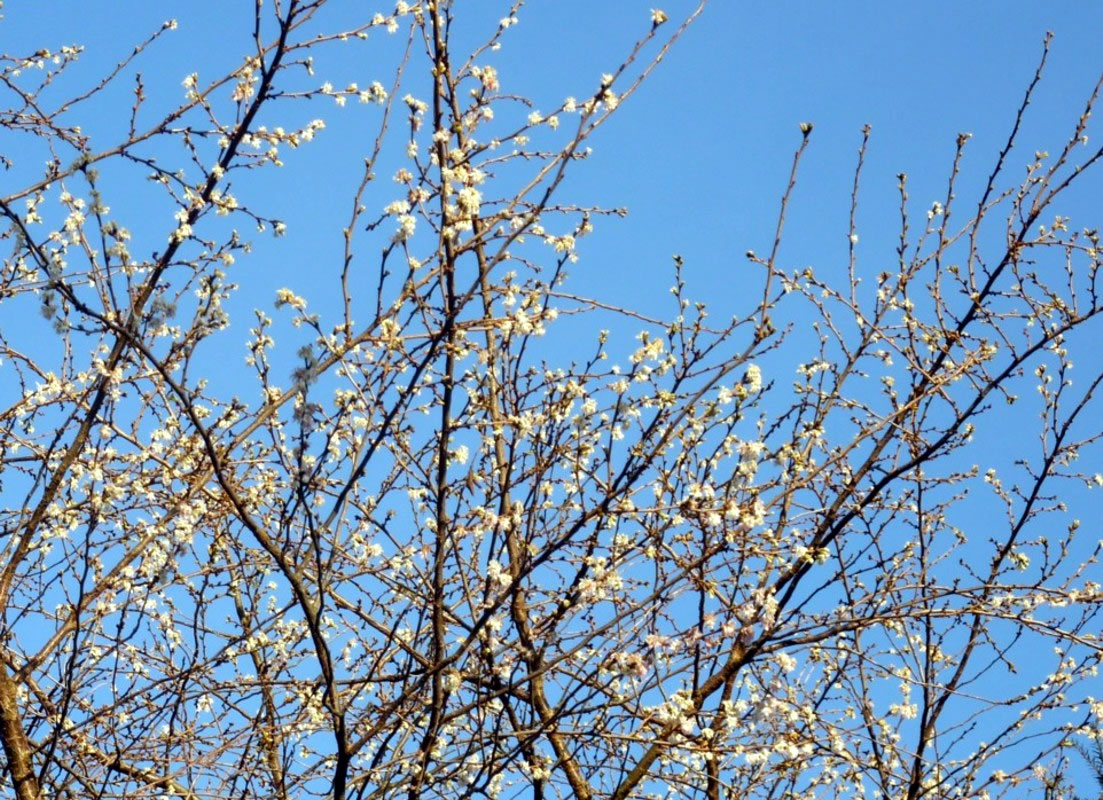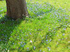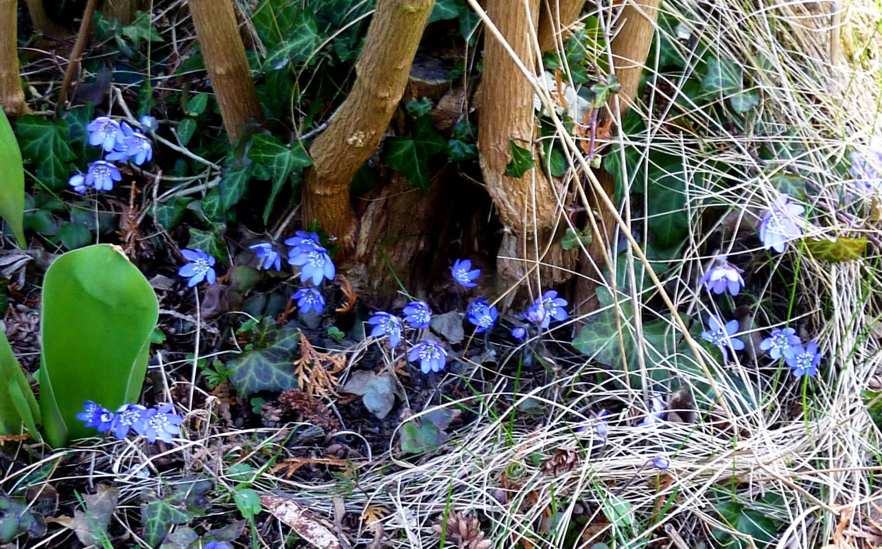 De erste warme Sünnenschien in den Märzenmaand haal mi in den Goorn. In de Heck keken al wedder de fienen zoortblagen Leverblööm ut de Eer. Dütt Johr weern dat besünners veel. De Grund vun de Heck lücht richtig vun hellblaag bit deepblaag. Düsse lütten Fröhblöher heff ik gor to geern, ok wenn se man korte Tiet blöht. Ik kann verstahn, dat de Japaner veel Geld anleggt, üm de lütten Blööm in ehr'n Goorn to hebben.
