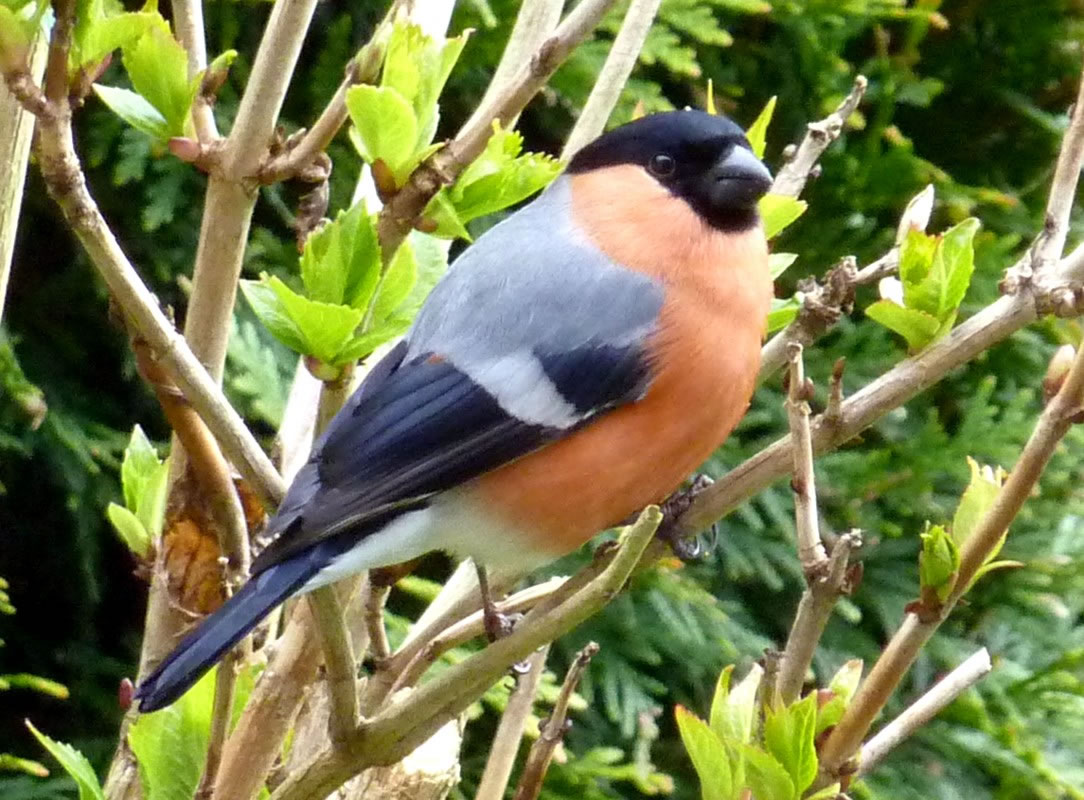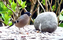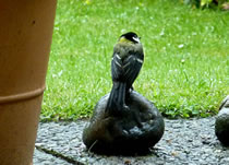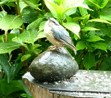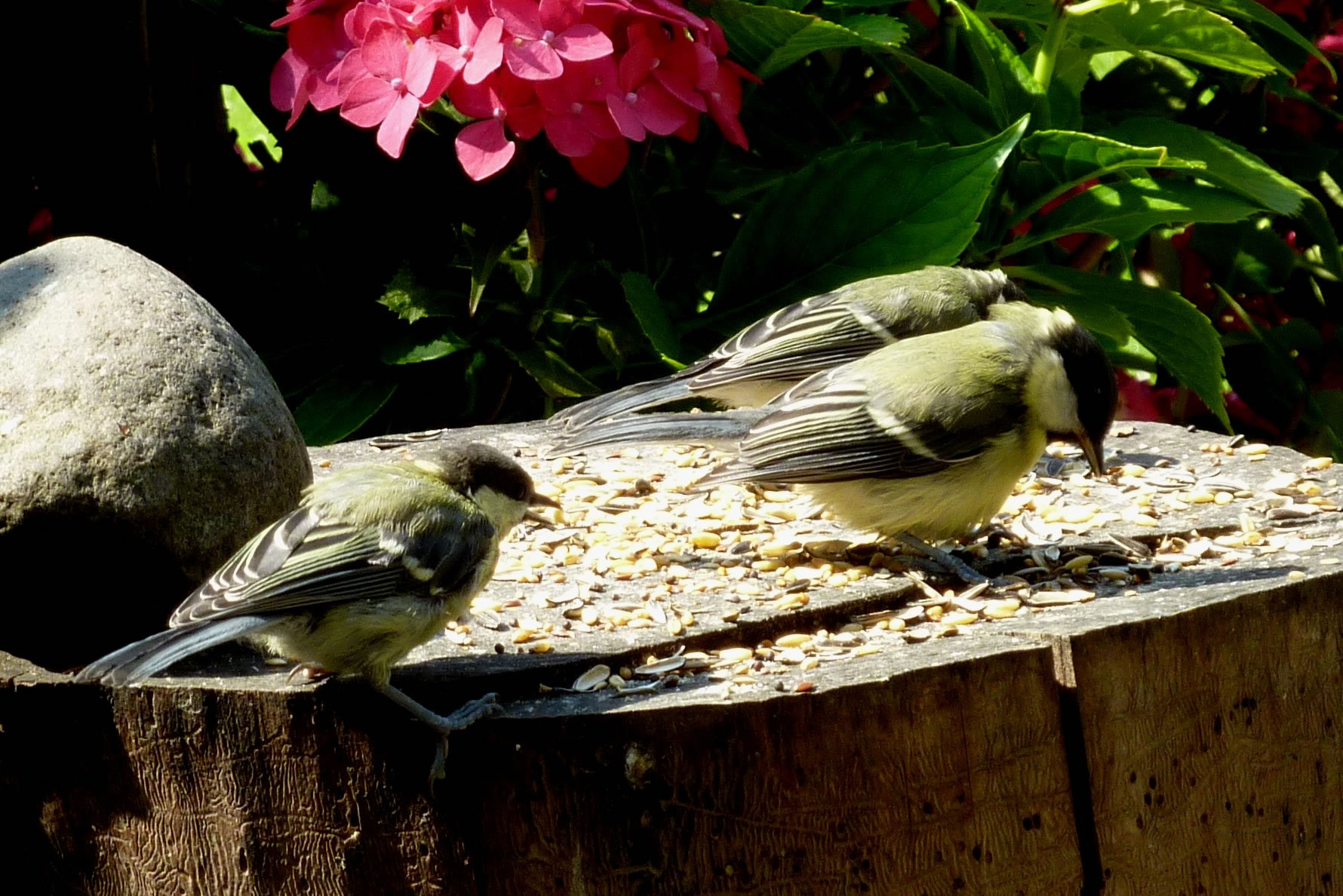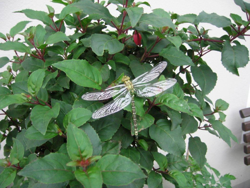 schickt. De Vagel seet so totrulich in de Hortensie, dat ik em goot